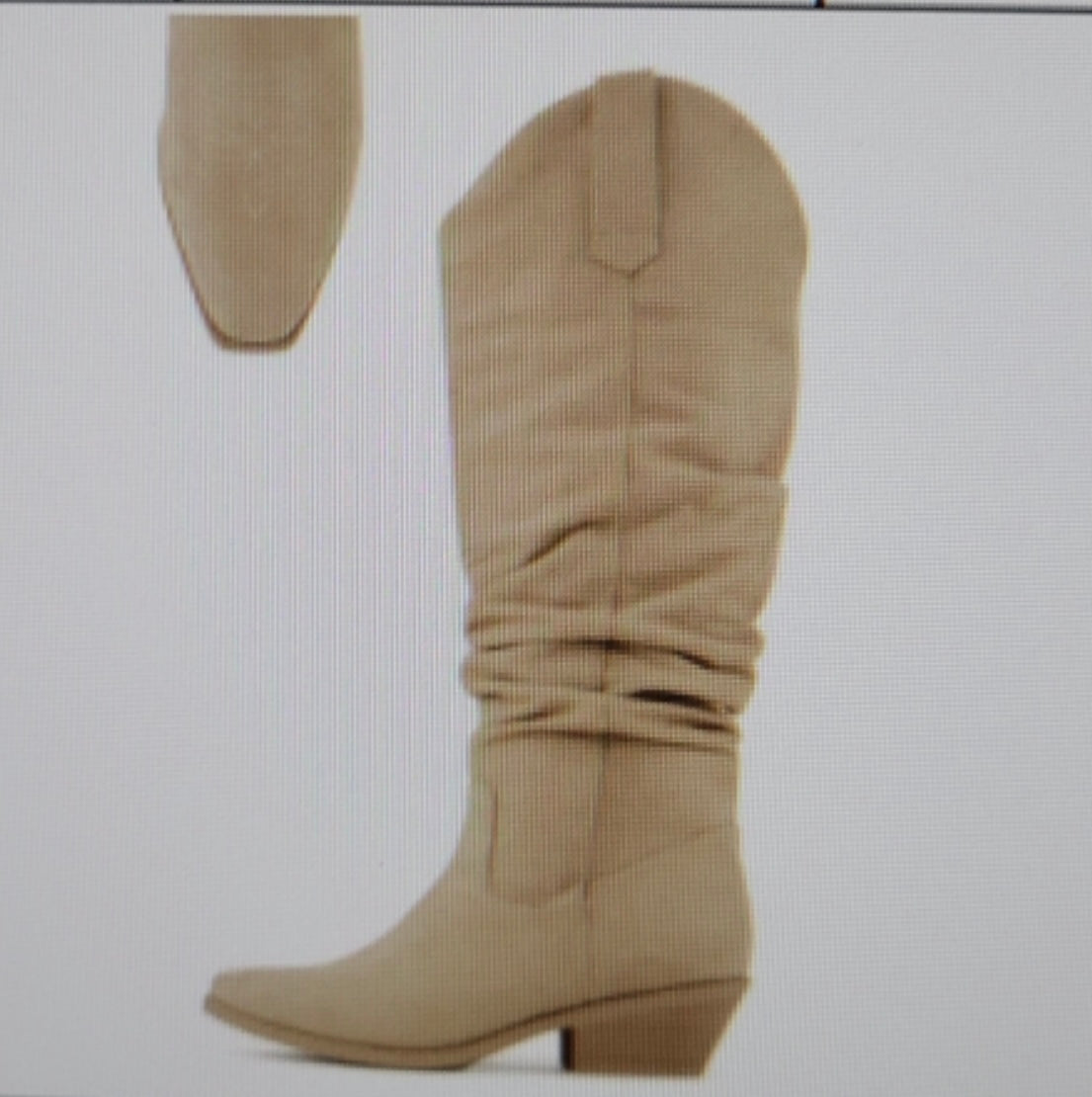 Elevate your look with these chic knee-high slouch boots. Featuring a sleek pointed toe and a sturdy block heel, they deliver both comfort and confidence with every step. The soft faux suede finish and relaxed, ruched shaft add effortless sophistication, making them versatile enough for pairing with denim or elevating your favorite dresses. Pull tabs at the top complete the Western-inspired silhouette while making them easy to slip on and off.