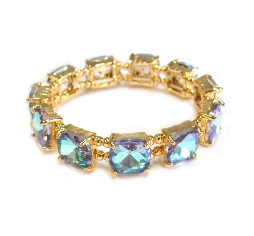 Dive into elegance with this beautiful crystal stretch bracelet featuring stunning turquoise stones. This refreshing piece captures the essence of tropical waters, adding a vibrant pop of color and sparkle to any outfit with a comfortable stretch design that fits most wrists effortlessly.