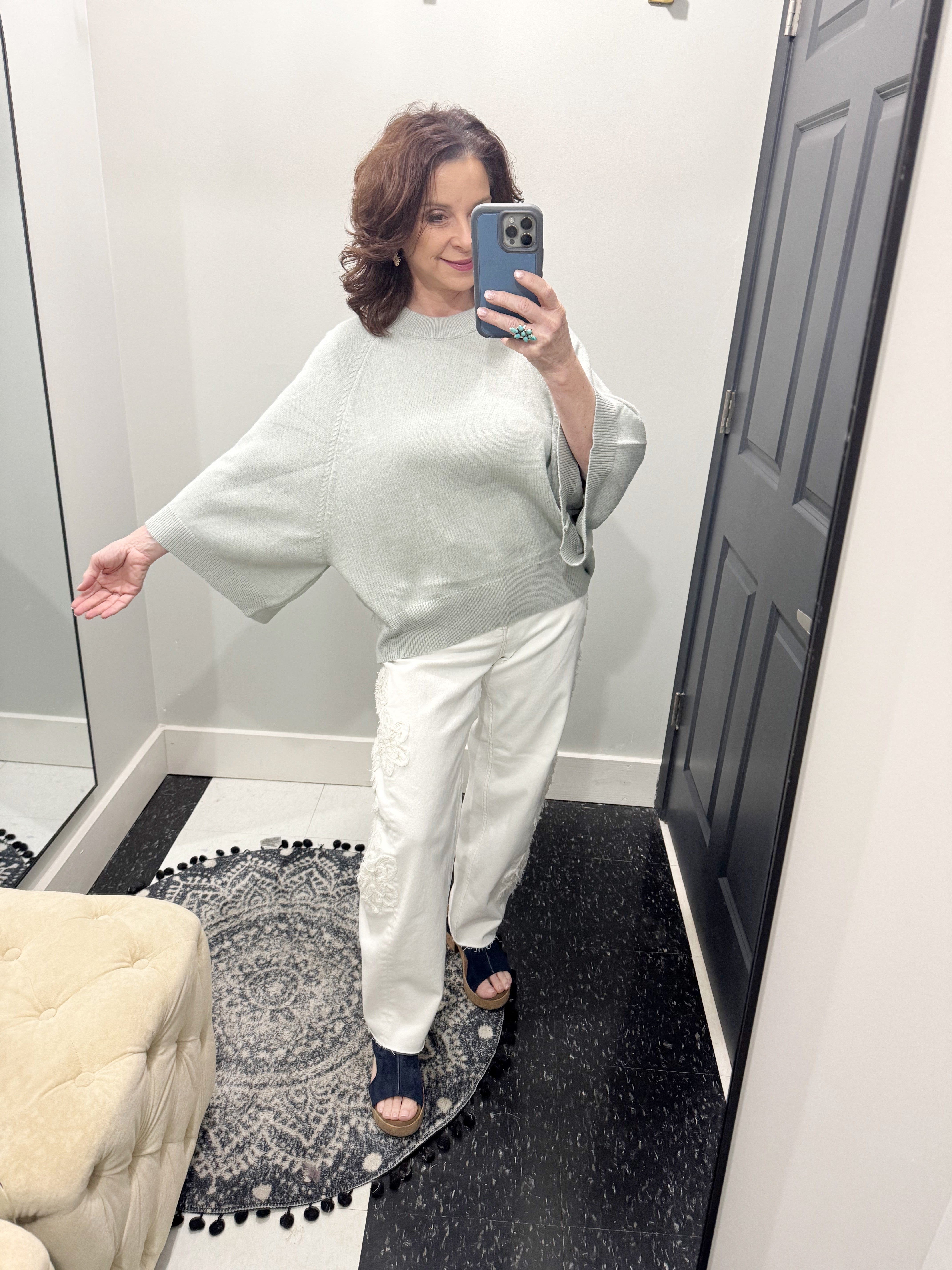Tummy Control High Rise Crop Wide Embroidered Jeans