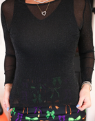Introducing the Mallory Mesh Glitter Top in Black, a must-have piece for anyone looking to bring a touch of sparkle to their wardrobe. Designed with shimmering glitter mesh fabric, this top is a showstopper that perfectly balances glamour and versatility. Whether you’re dressing it up for a night out or layering it into your everyday looks, this piece offers endless possibilities to shine in style.
