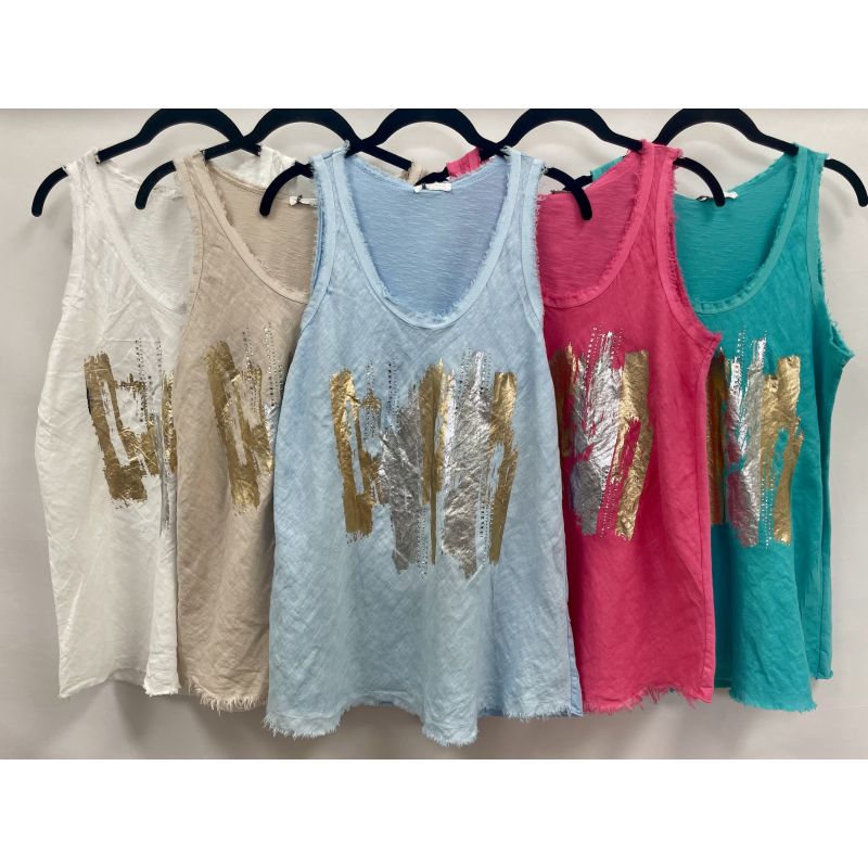 Italian one size gold foil cotton/linen top