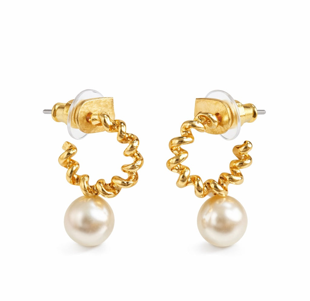 Gold Plated Wavy Pearl Drop Earrings