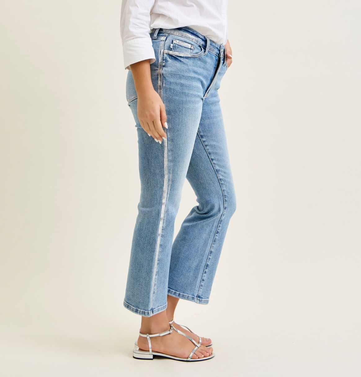 Judy Blue Foiled Seam Kick Flare Jeans