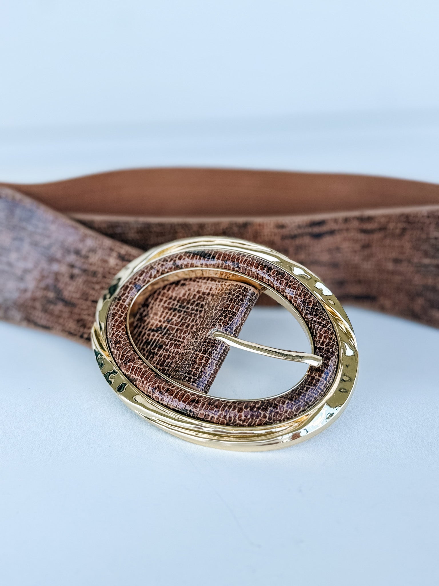 • Large gold statement buckle