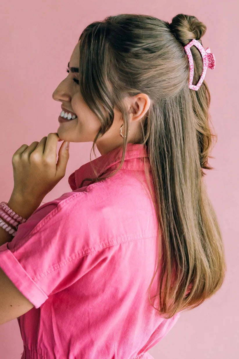 Say goodbye to breakable hair clips! We have perfected the hair tie and now have re-invented the clip. Meet the Open Tropical Punch Medium Claw Hair Clipin Pink, crafted to elevate any hairstyle with the ideal blend of style and function.
