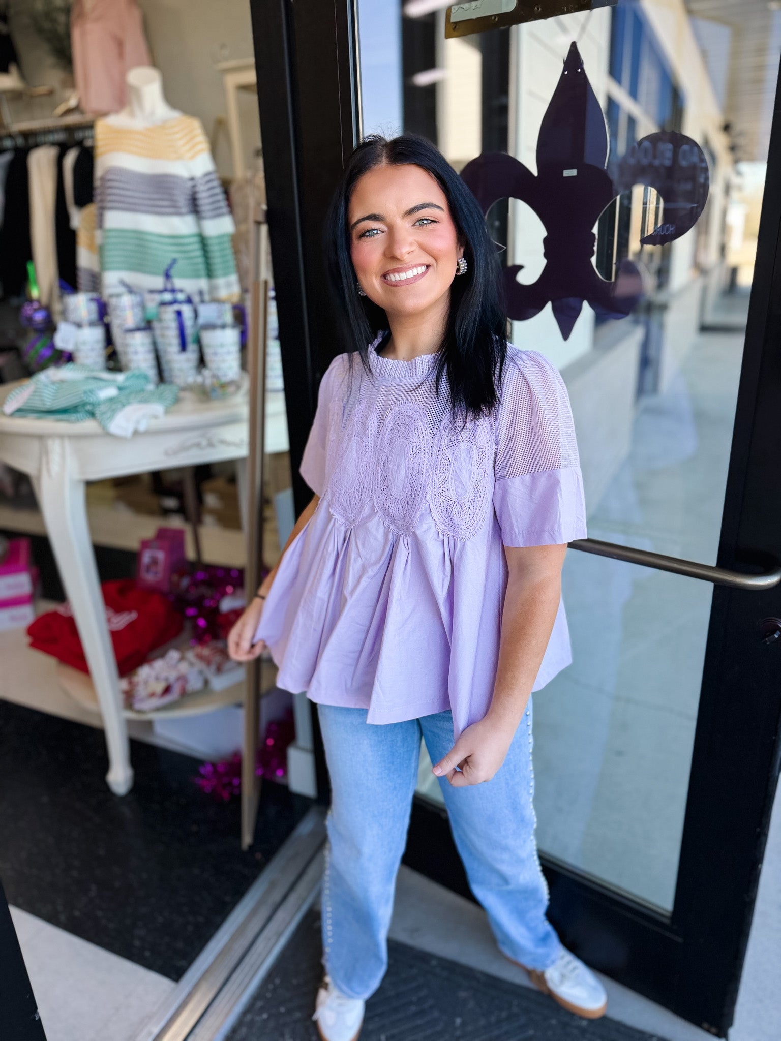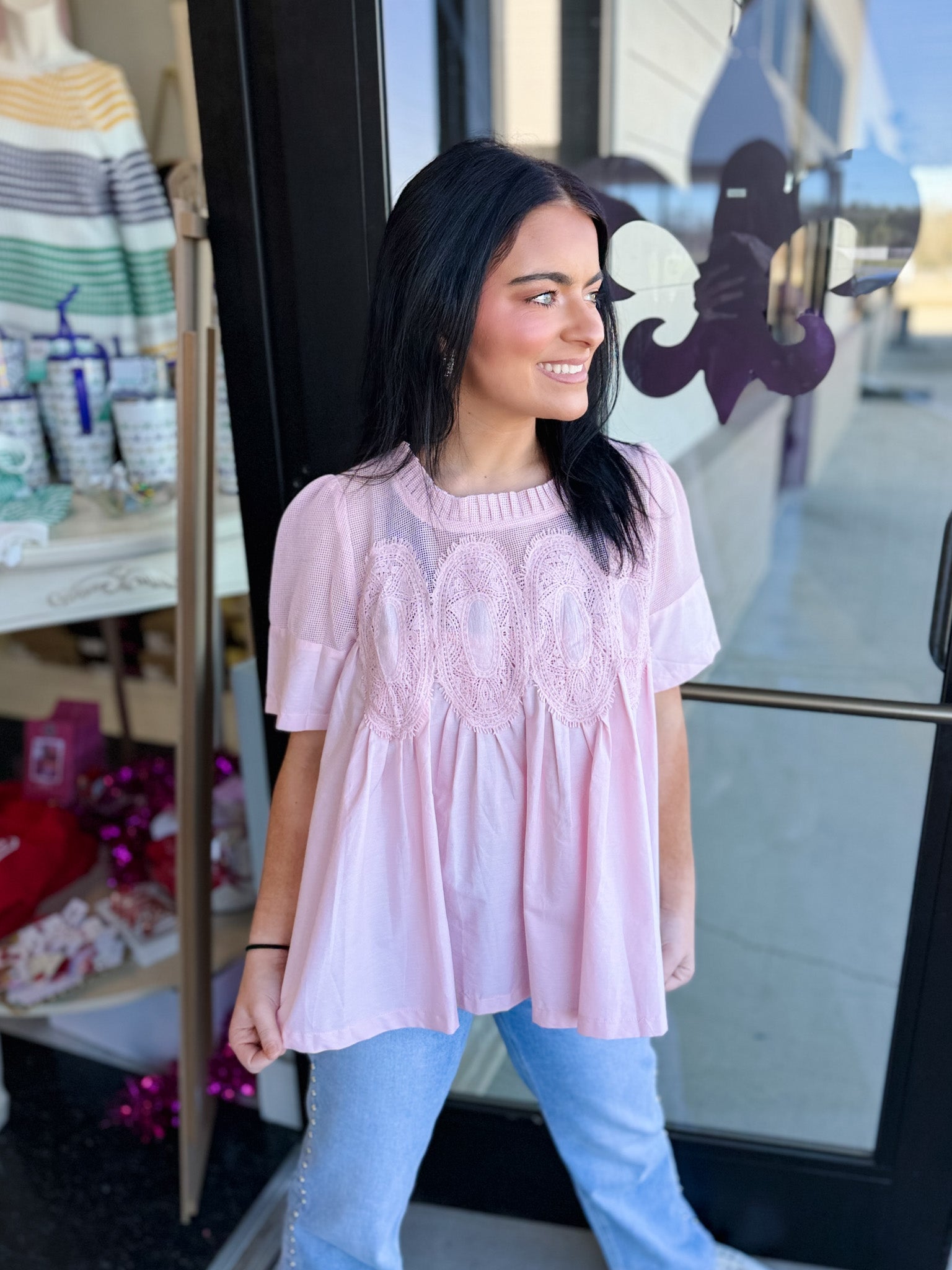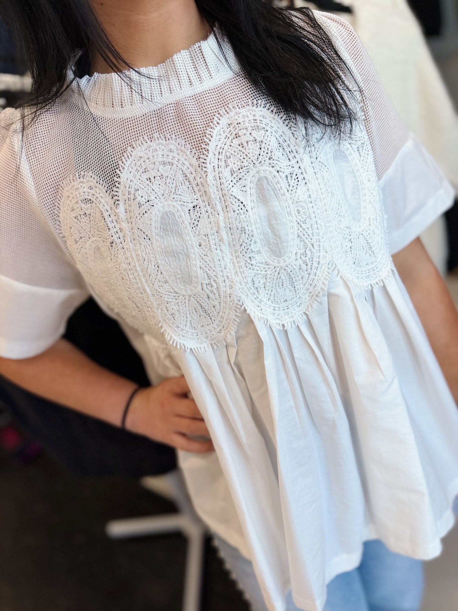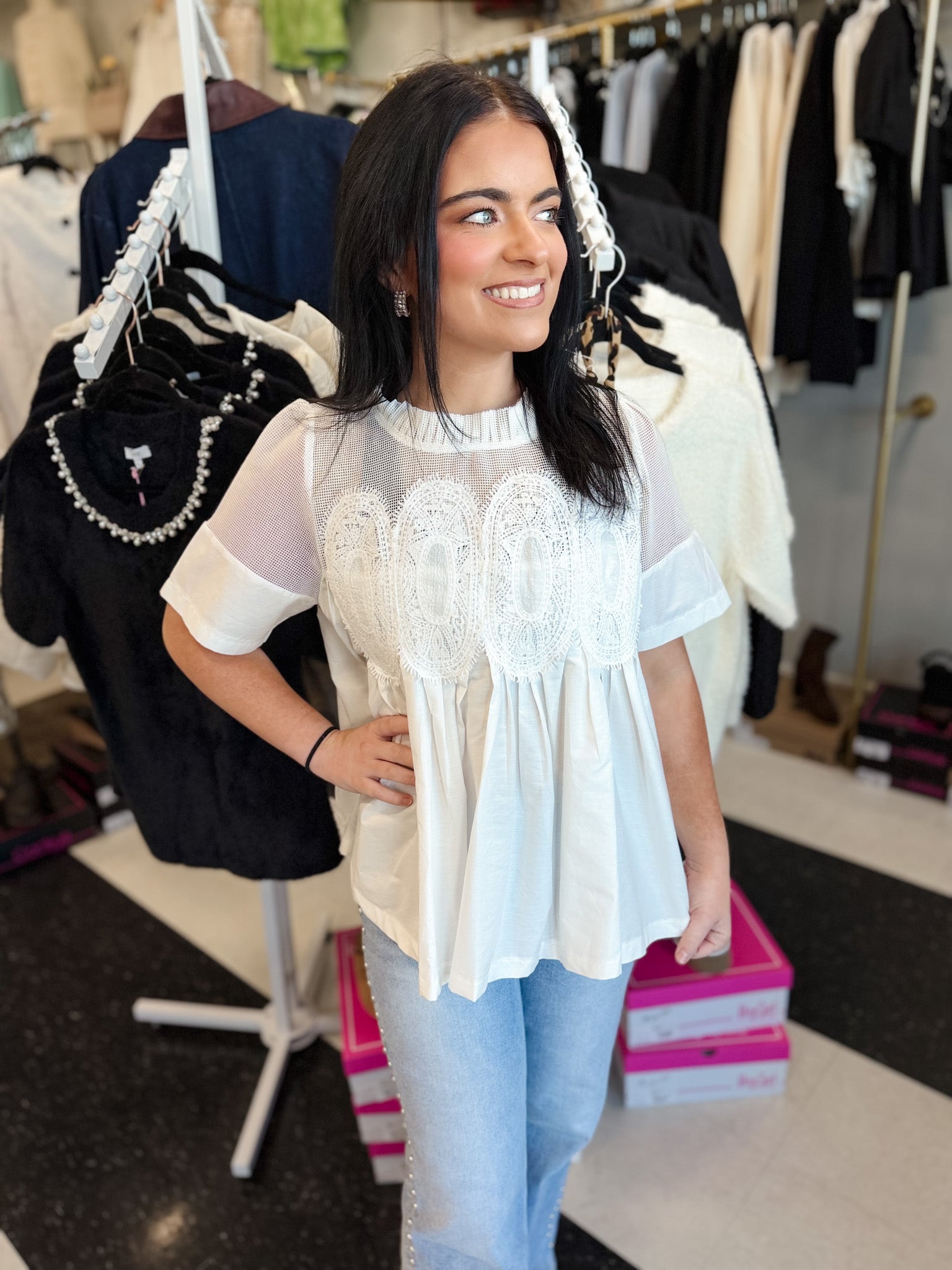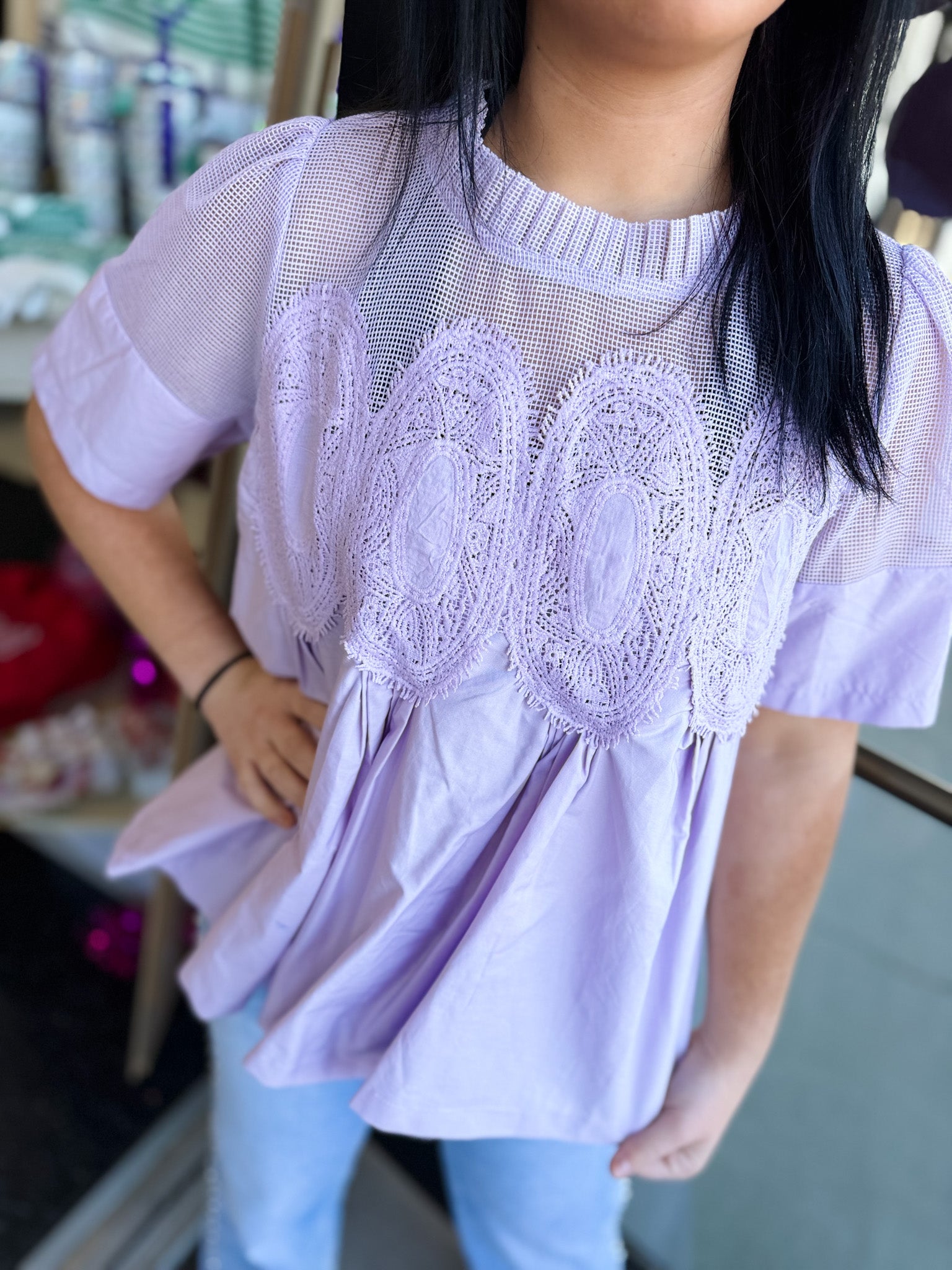 Isla Appliqué Mesh Blend Top!