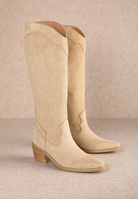 Step confidently in the Juliette High Boots, where timeless Western style meets modern sophistication. Crafted from supple suede, these knee-high boots offer a comfortable, durable fit that molds to your stride. The stacked mid-block heel provides subtle elevation, enhancing your silhouette with effortless elegance. Perfect for making a refined statement, these boots seamlessly blend classic charm with contemporary flair for any occasion.
