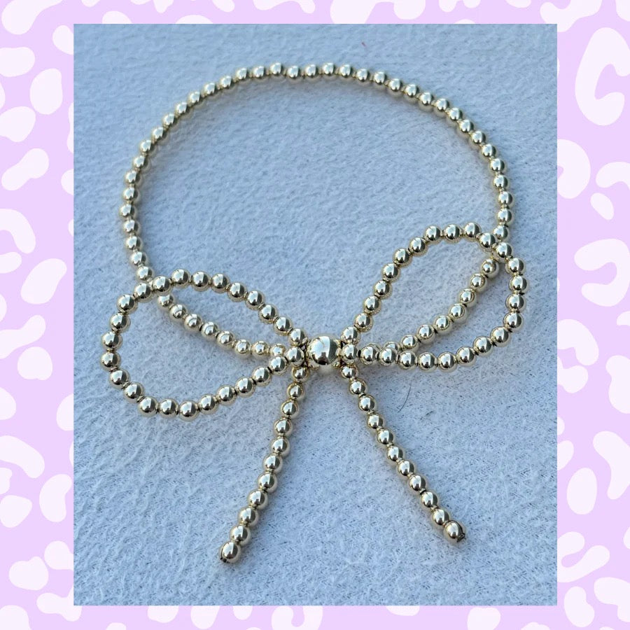 This delicate 3mm bow bracelet, crafted from lustrous gold-filled material, adds a refined touch of sophistication to any look. Its sleek, minimalist silhouette makes it a versatile accessory suited for both everyday wear and elegant occasions.