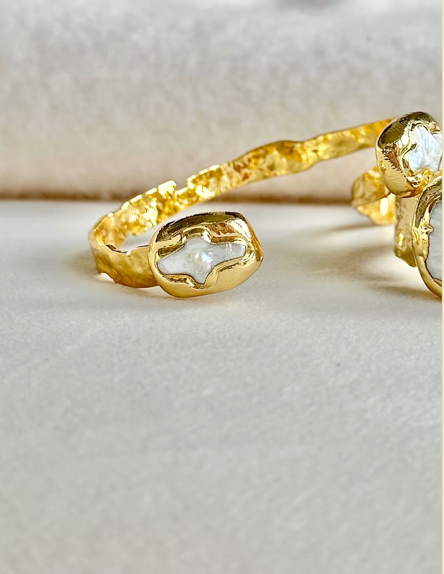 Introducing the Misty Cuff - Cross, a stunning addition to our collection of jewelry. This bestselling style features a freshwater pearl in the shape of a cross, adding a touch of elegance and spirituality to any outfit. The Misty Cuff is made with high-quality materials and is adjustable to fit most wrist sizes. Whether you're dressing up for a special occasion or adding some flair to your everyday look, the Misty Cuff - Cross is the perfect accessory. Order yours today and experience the beauty and charm of this timeless piece.