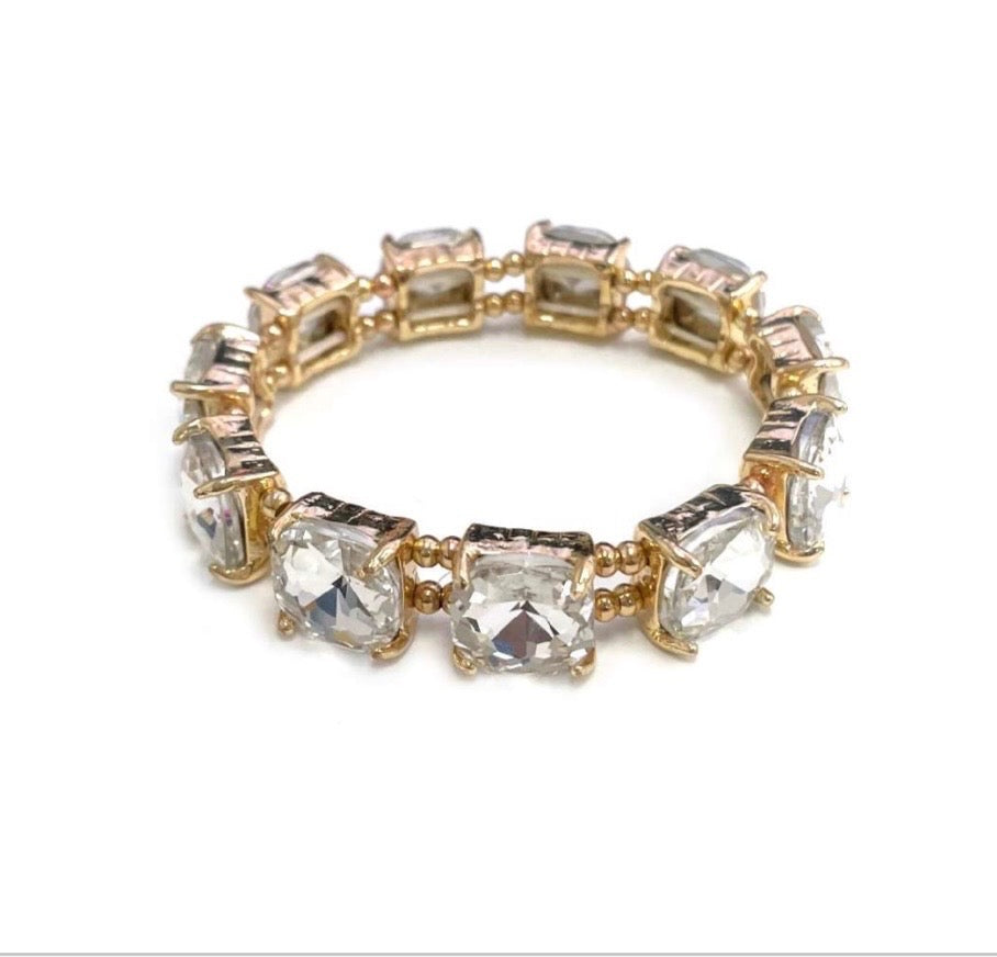 Embrace your inner royalty with this beautiful crystal stretch bracelet featuring luminous clear stones. This elegant piece adds a touch of sparkle and sophistication to any outfit, with a comfortable stretch design that fits most wrists effortlessly.