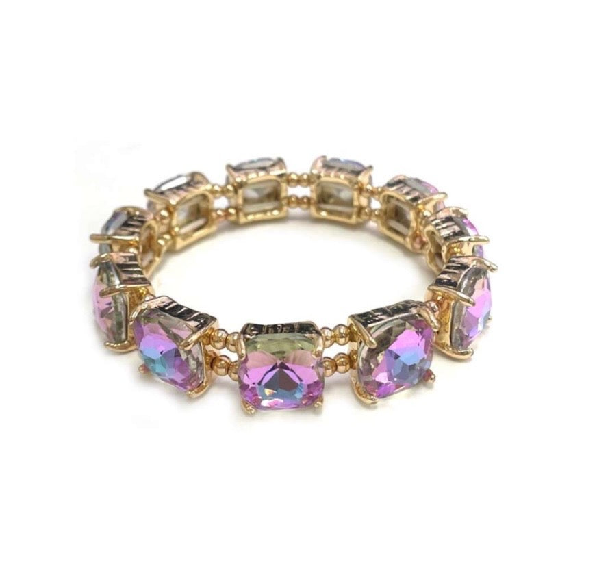 Complete your look with this beautiful crystal stretch bracelet featuring luminous pink stones. This versatile piece adds a touch of sparkle and sophistication to any outfit, with a comfortable stretch design that fits most wrists effortlessly.