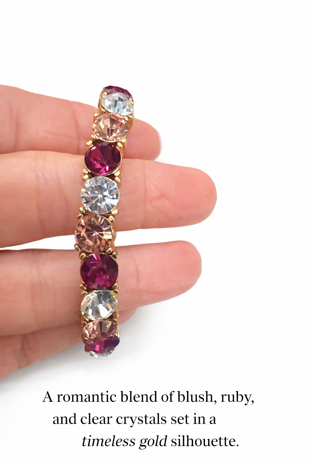 A romantic blend of blush, ruby, and clear crystals in a timeless gold setting.