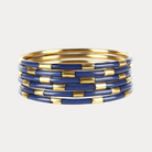 The Ivory White Veda Bangles are a timeless essential for every jewelry collection. Crafted with a slim profile and feather-light feel, these six bangles are perfect for mixing, matching, and layering to create your unique wristscape. Their exquisite ivory and gold enamel design brings understated sophistication to both casual and elegant looks.