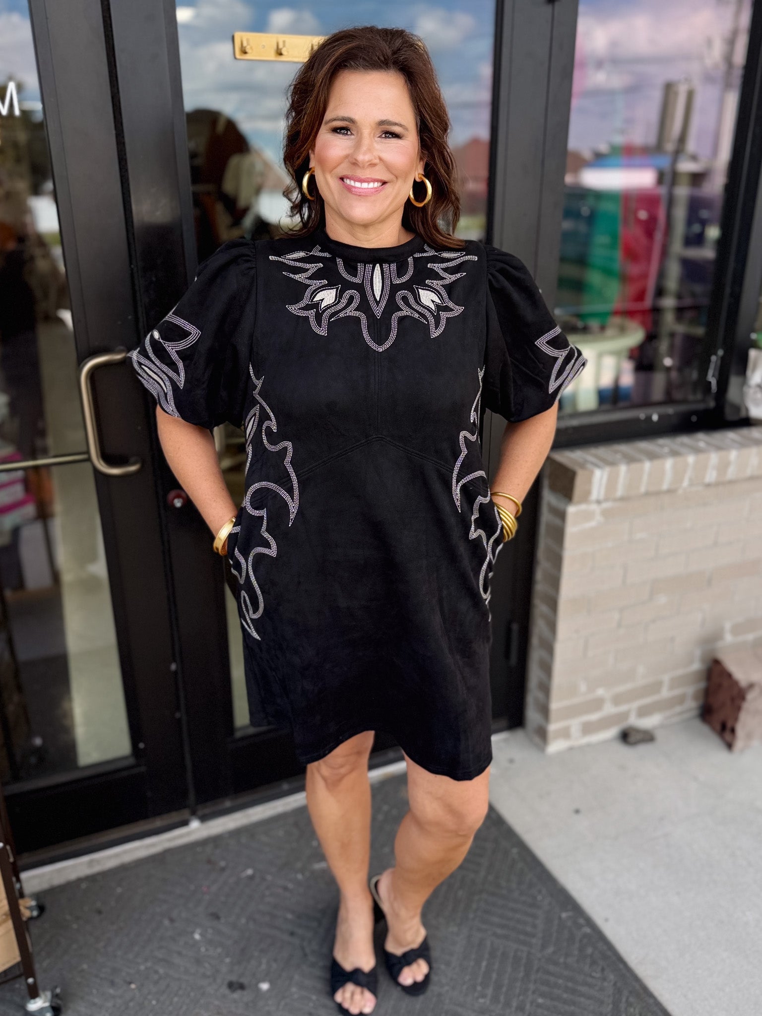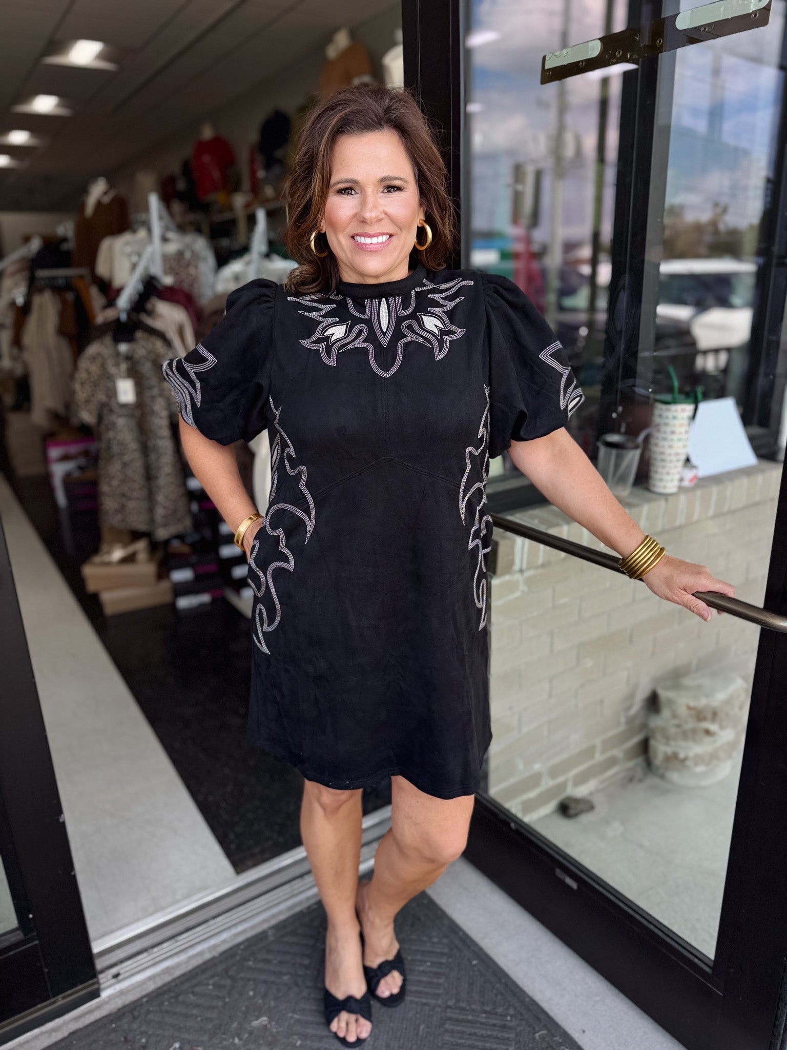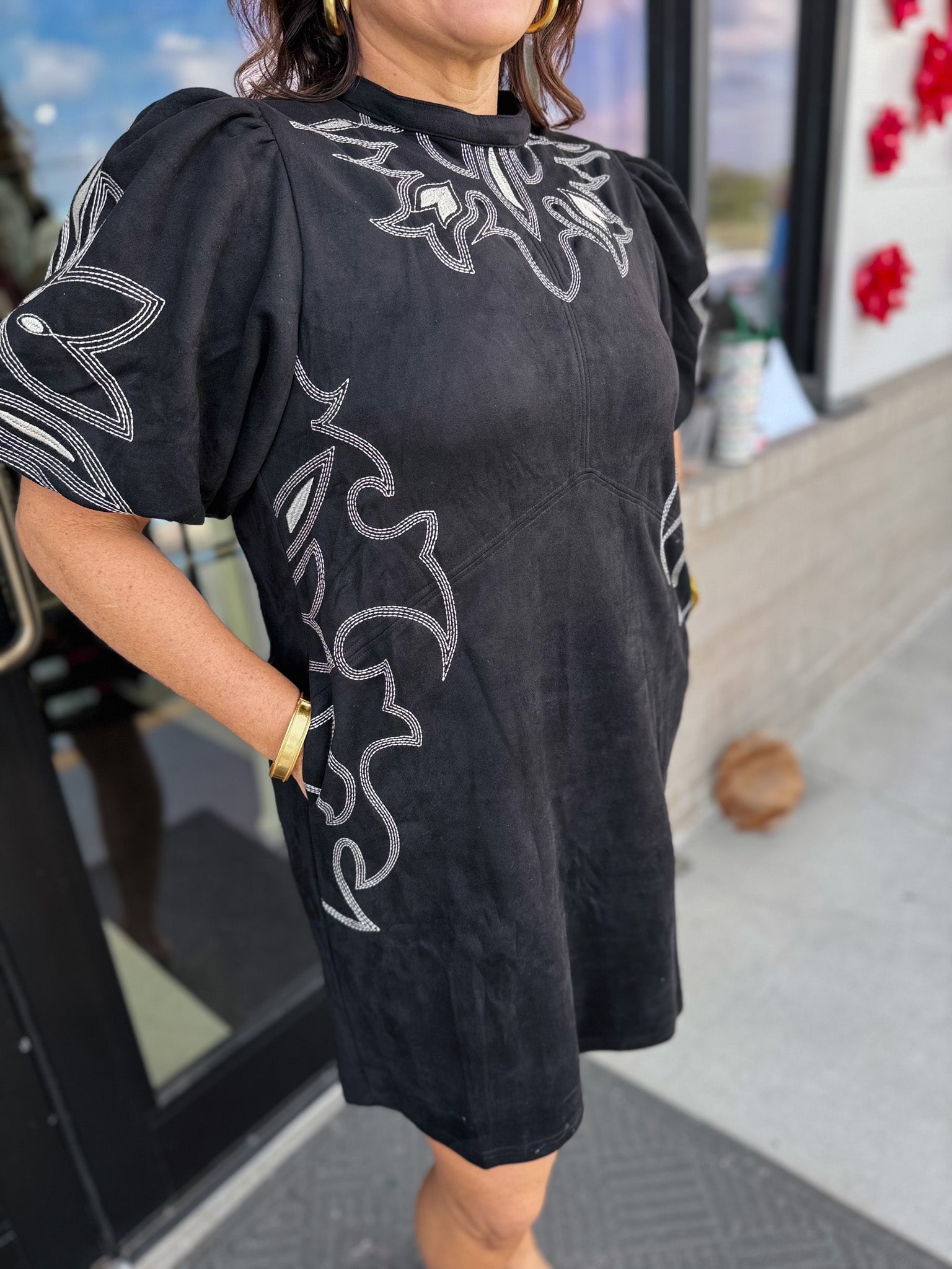 ✨ The Selene Embroidered Faux Suede Dress!