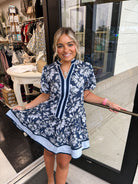 This elegant mini dress showcases a delicate floral print with short bubble sleeves and a ruffle hem, adding a refined touch to its silhouette. The multicolor contrast accent on the neckband and hem enhances its sophisticated appeal. Crafted from lightweight woven fabric, it is fully lined and non-sheer for comfortable wear. Practical side pockets complete this graceful design, perfect for a polished yet effortless look.