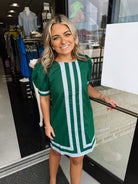 The Entro Daisy Dress is a playful mini dress with charming short puff sleeves and a contrasting accent border that adds a fun pop of style. Featuring a single button keyhole closure at the back and handy side pockets, this lightweight woven dress is fully lined and non-sheer for comfortable wear. Perfect for sunny days and casual outings, it combines cute details with practical design.