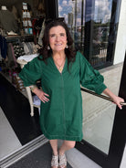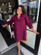 Step out in style with the Entro Slay The Day Dress! This solid ¾ lantern sleeve mini dress features playful contrast accent stitching and a chic V-neck spread collar. The front zipper adds a fun twist, while side pockets keep your essentials close. Lightweight, lined, and woven for comfort and coverage, it’s perfect for turning heads wherever you go.