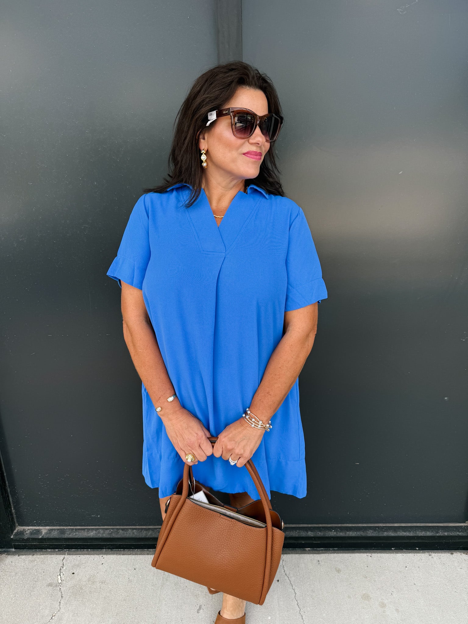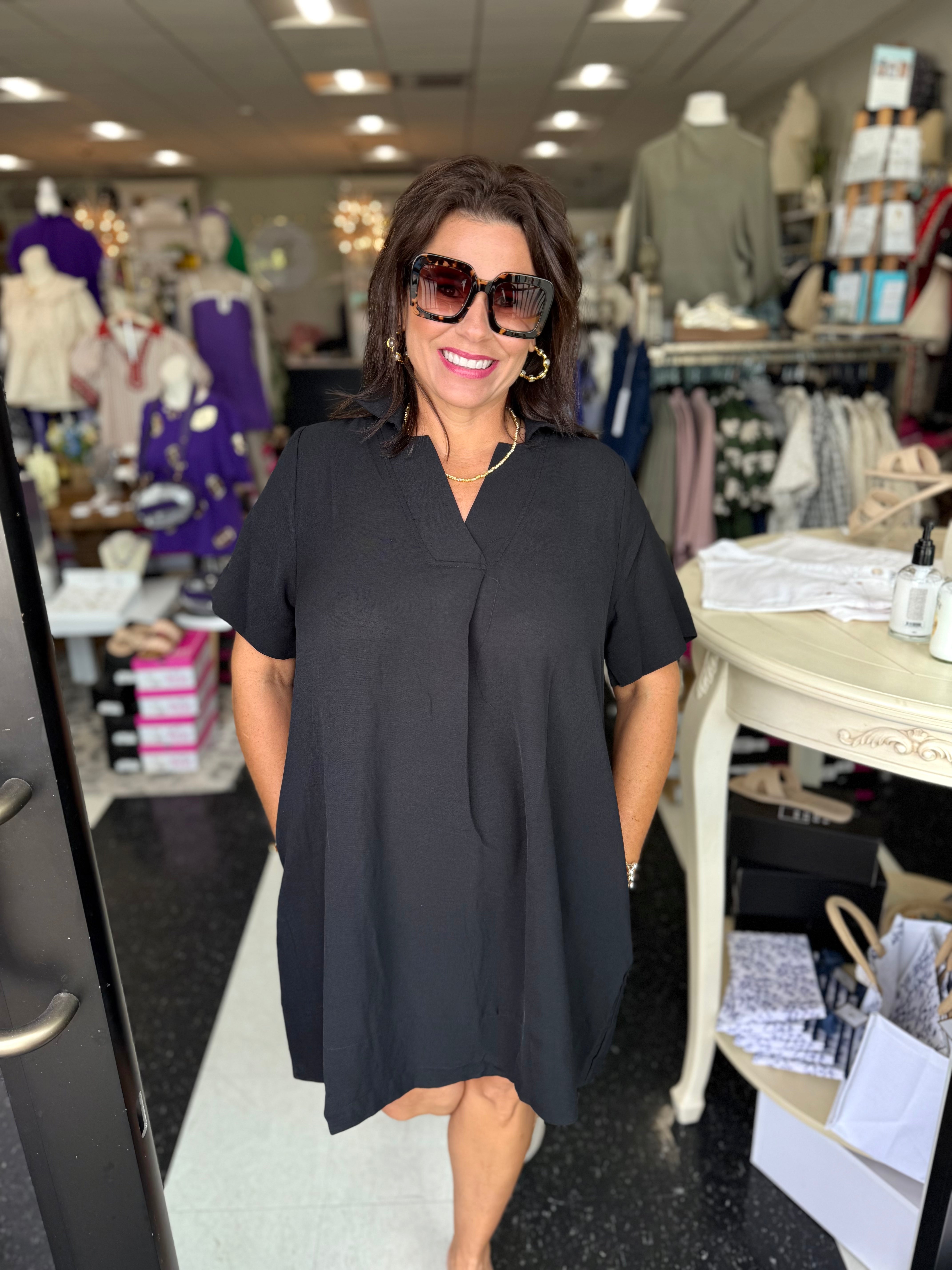 This short sleeve collared mini dress brings fun and flair to your wardrobe! With its breezy fit and handy pockets, it’s perfect for sunny days and spontaneous adventures. Easy to wear and effortlessly stylish, it’s your new go-to for playful, everyday charm.