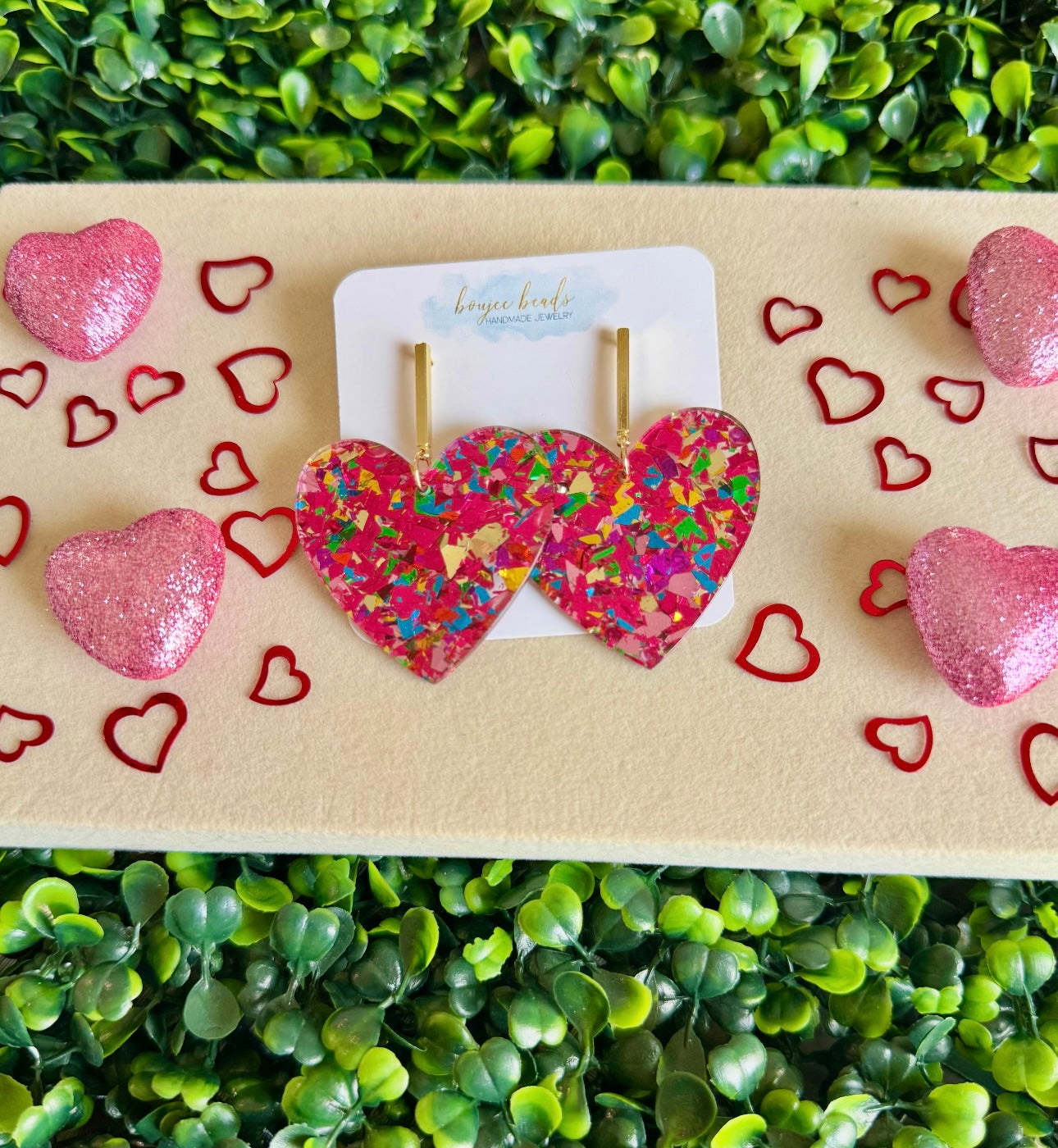 Meet Celeste—the perfect blend of elegance and playfulness. These stunning gold bar earrings feature a charming heart design with a confetti appearance that catches the light beautifully. The sleek bar silhouette adds modern sophistication, while the lightweight construction ensures all-day comfort. These statement earrings effortlessly elevate any look from casual to chic.