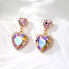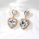 The Radiant Love Double Heart Earrings feature a stunning two-tier heart design that brings instant elegance and charm. A faceted crystal heart stud sits atop a larger heart drop, framed with shimmering rhinestones for a look that catches the light beautifully from every angle.