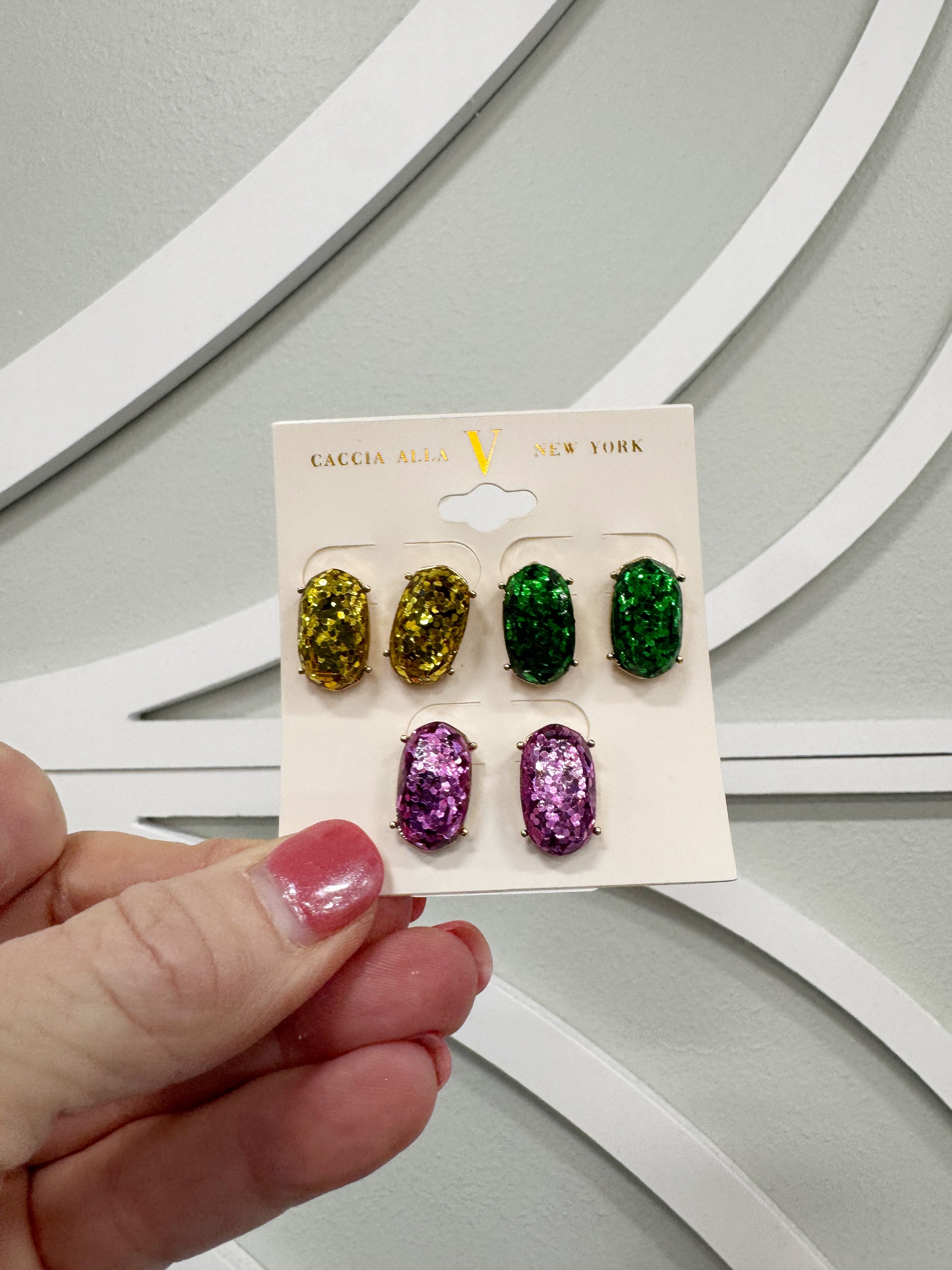 Mardi Gras Sparkle Stud Trio!