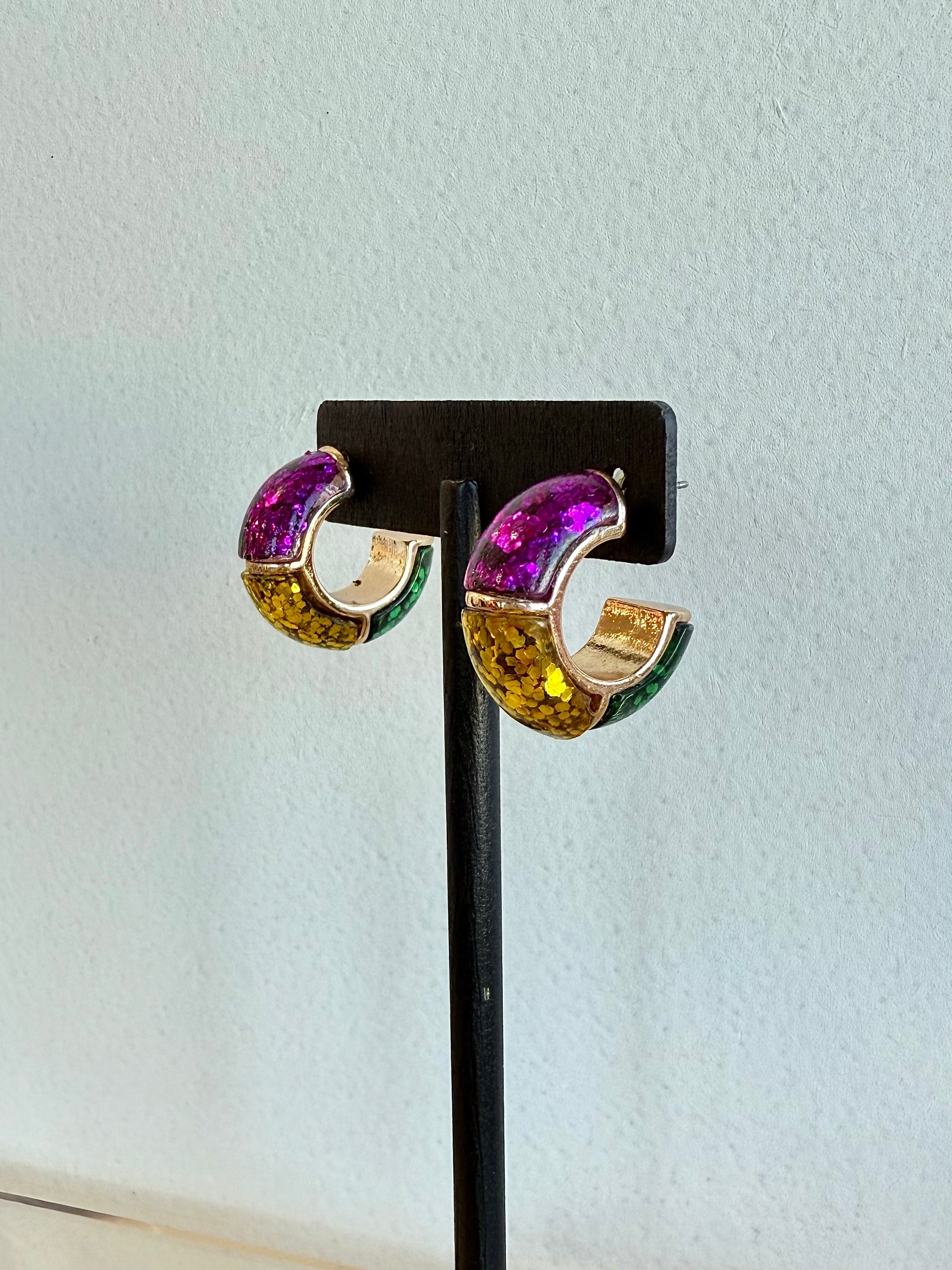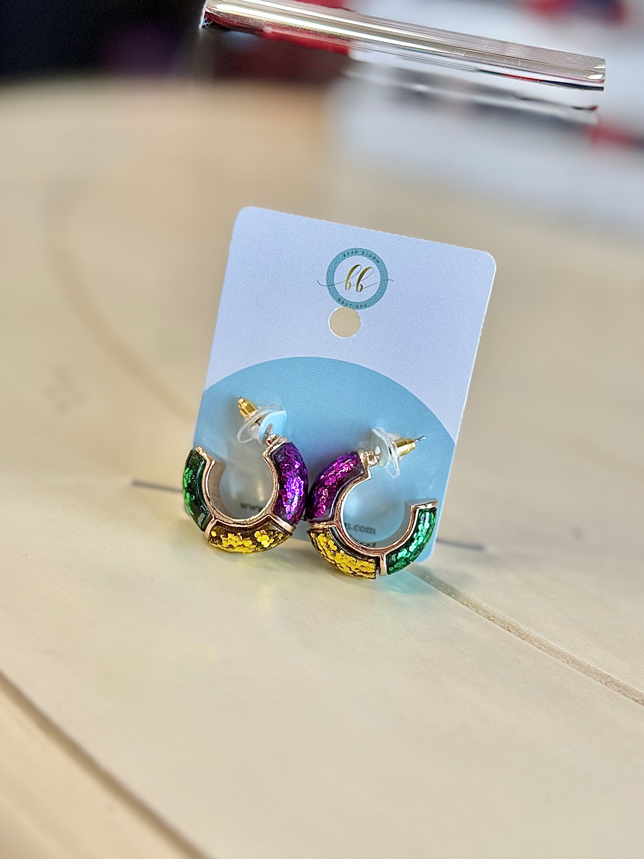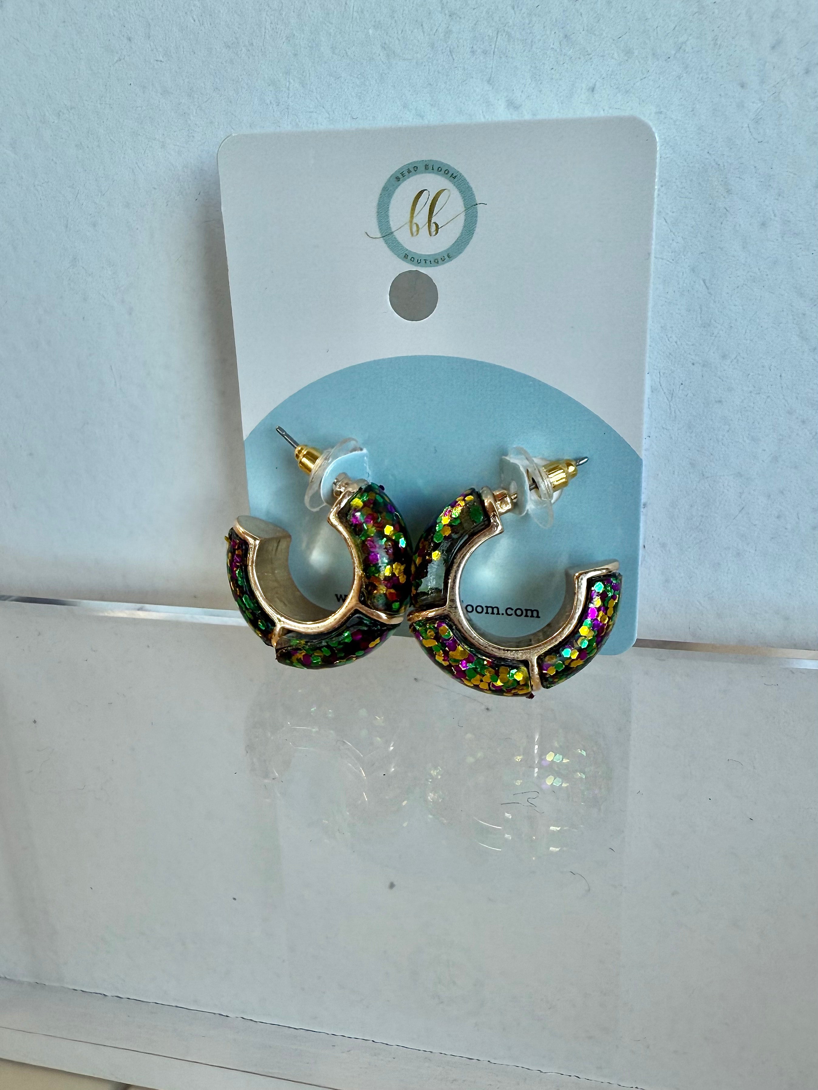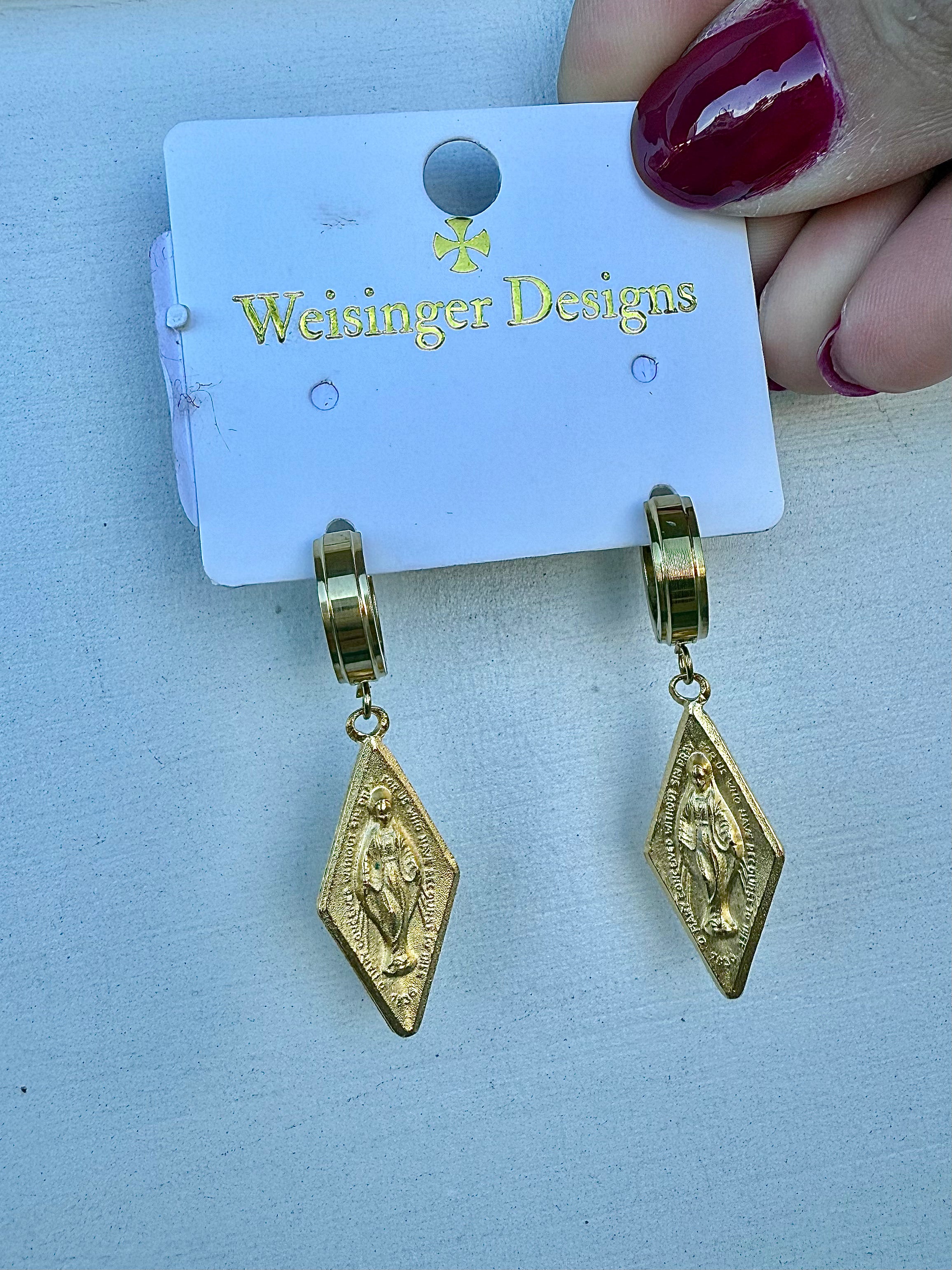 Gold Hammered Coin w/clear Crystal drop 2” Earrings!