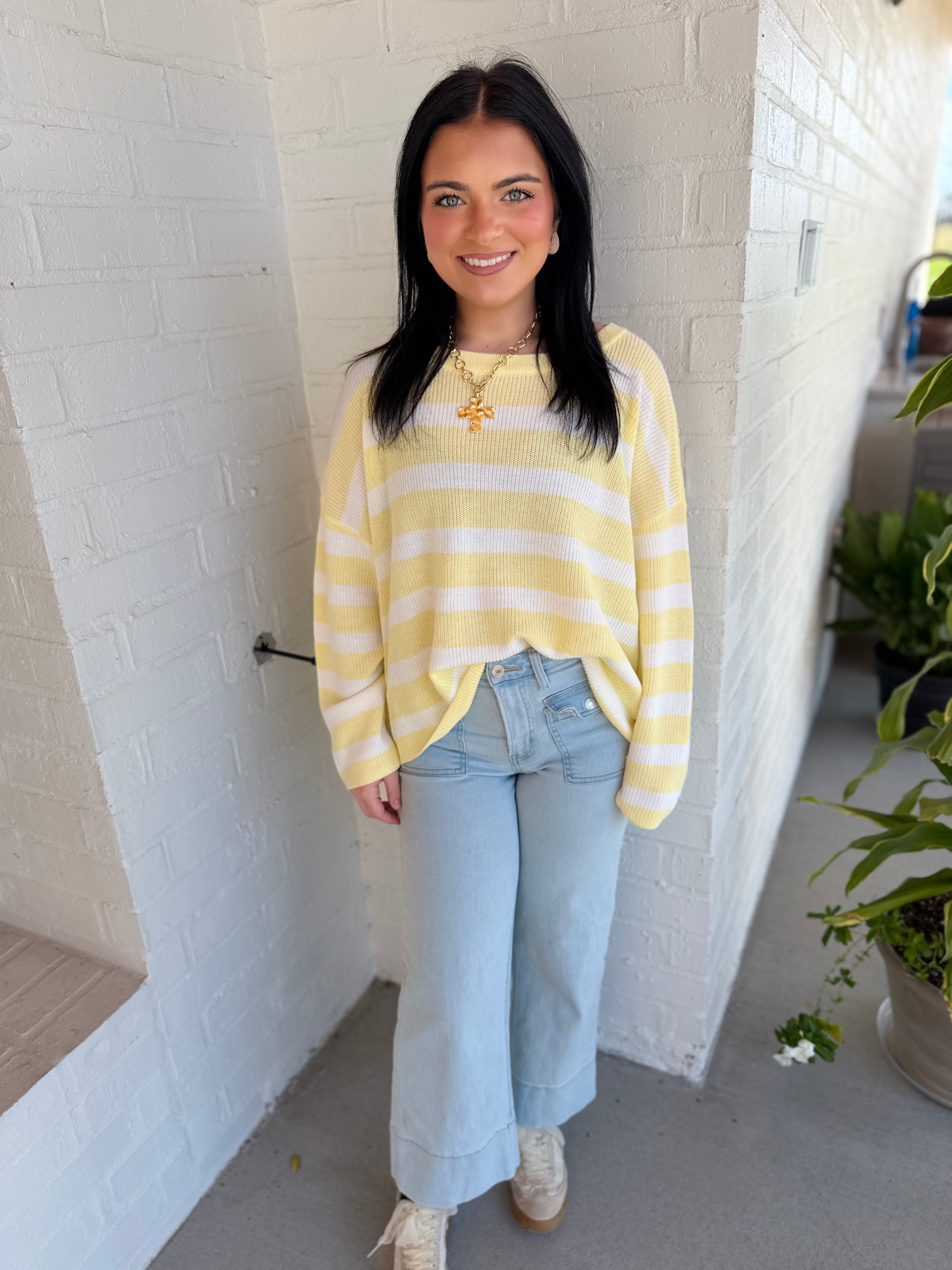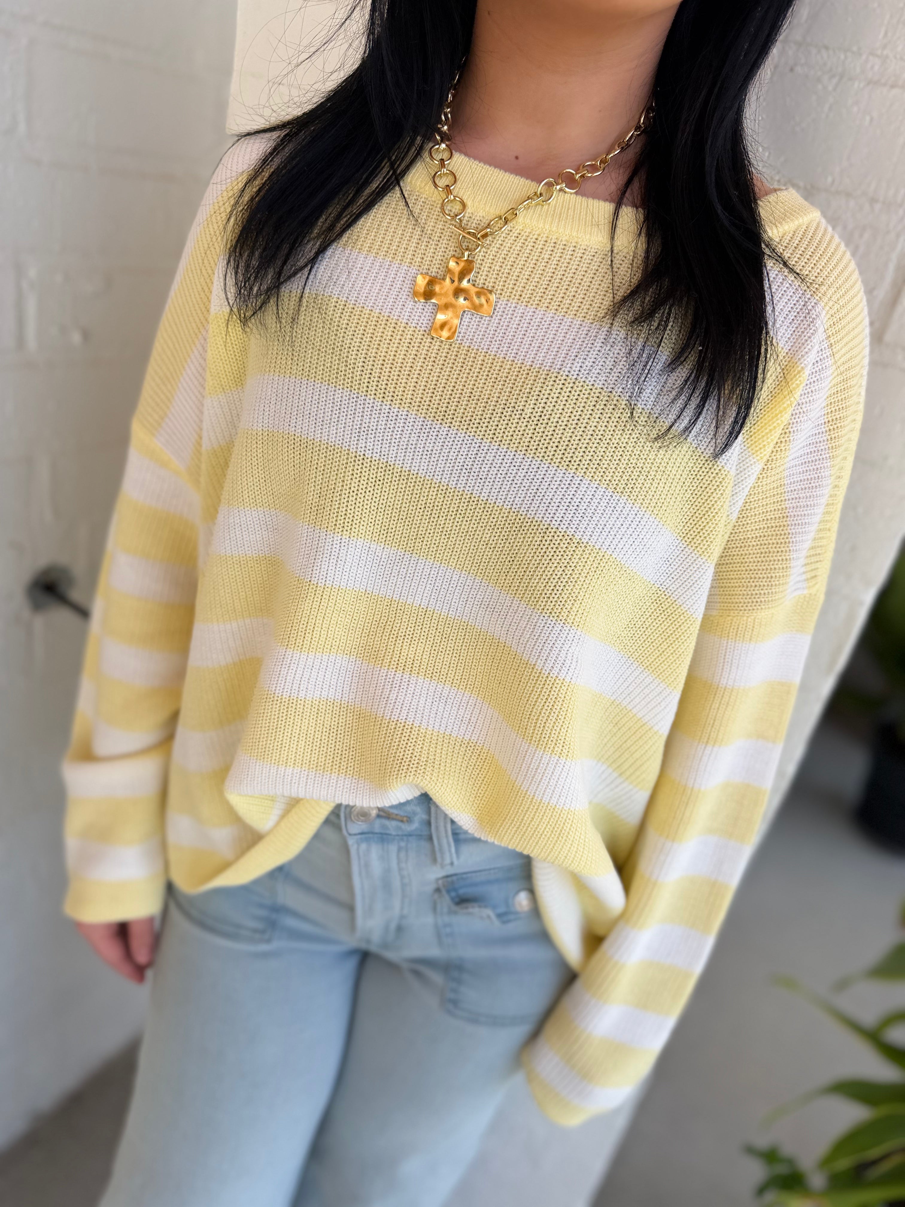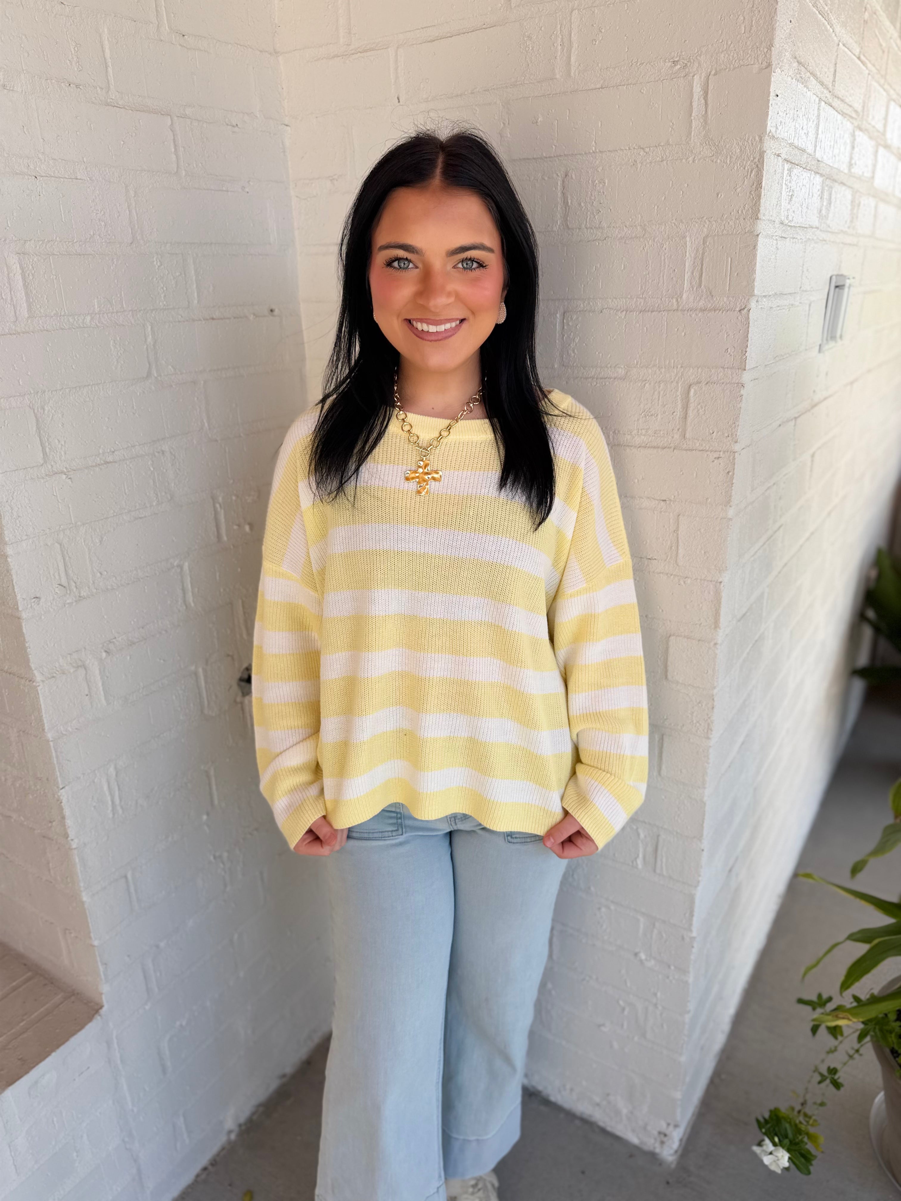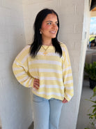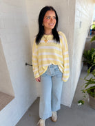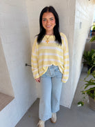 Cozy, chic, and effortlessly stylish 🤍 This oversized knit sweater features a flattering scoop neckline and bold striped pattern that runs throughout, adding playful texture and modern appeal. Crafted from a soft acrylic-cotton blend, it offers relaxed comfort and easy layering for everyday wear.