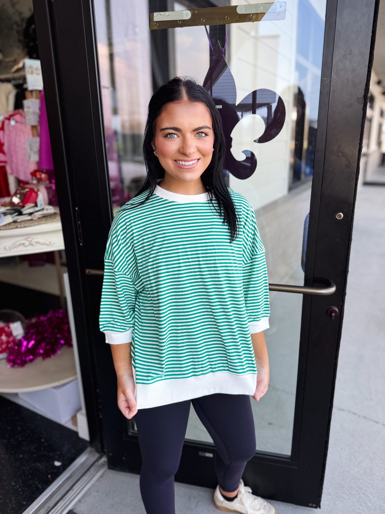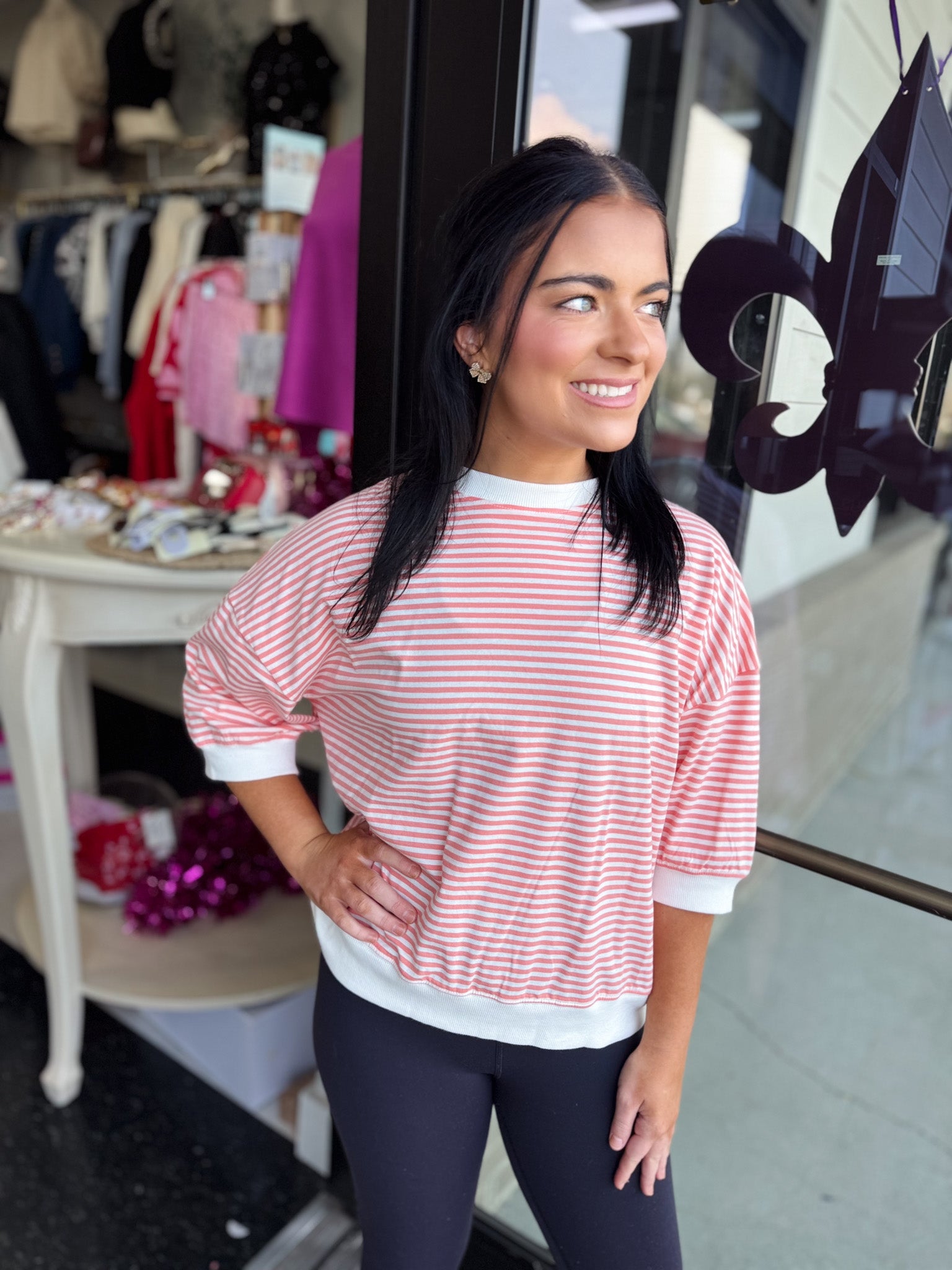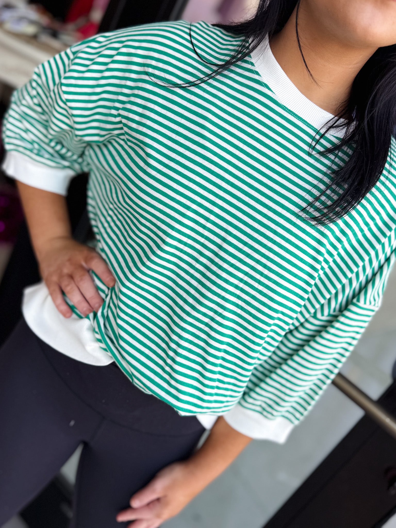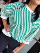 Striped Contrast Trim Banded Bottom Top