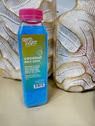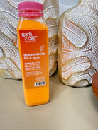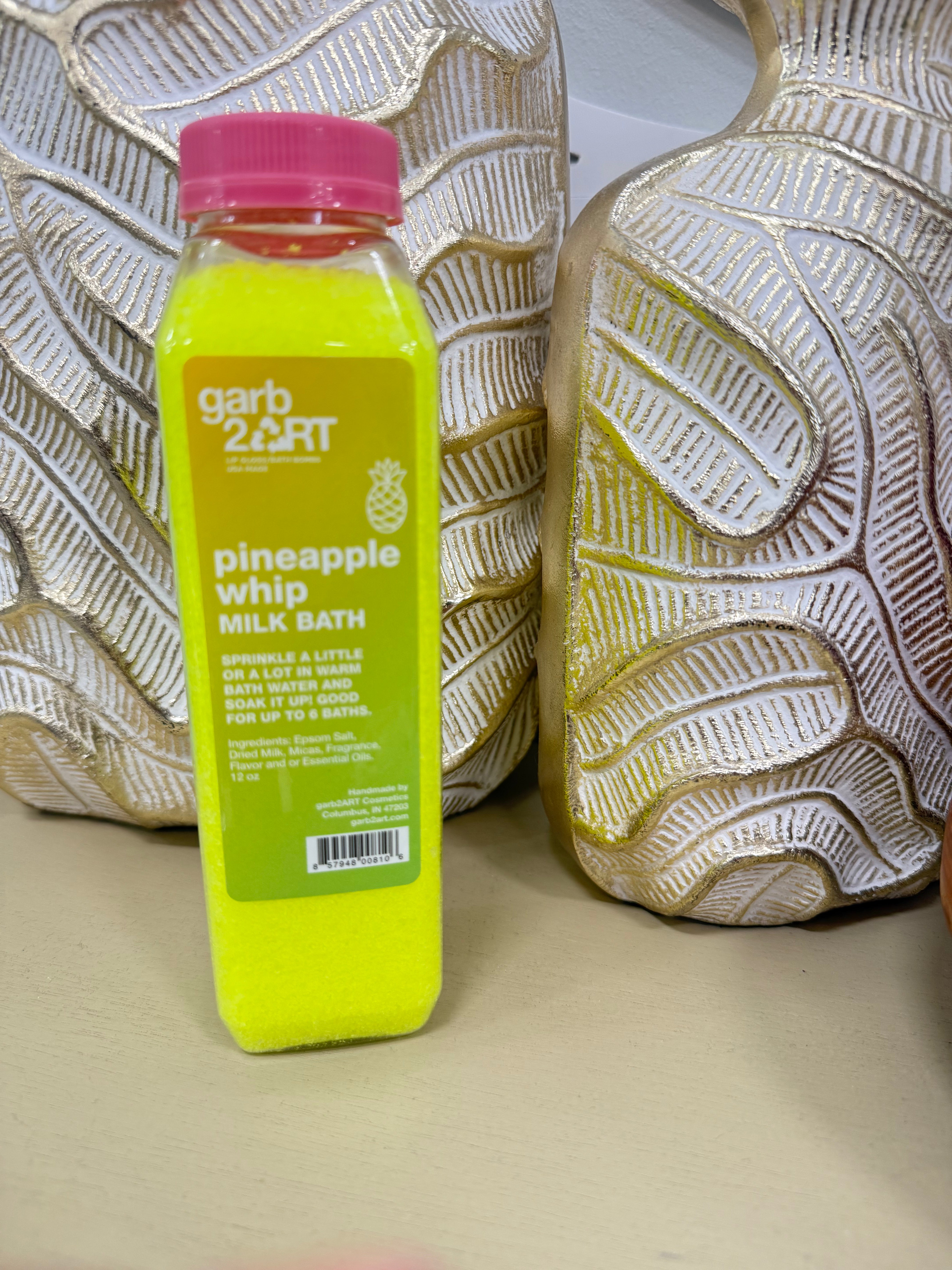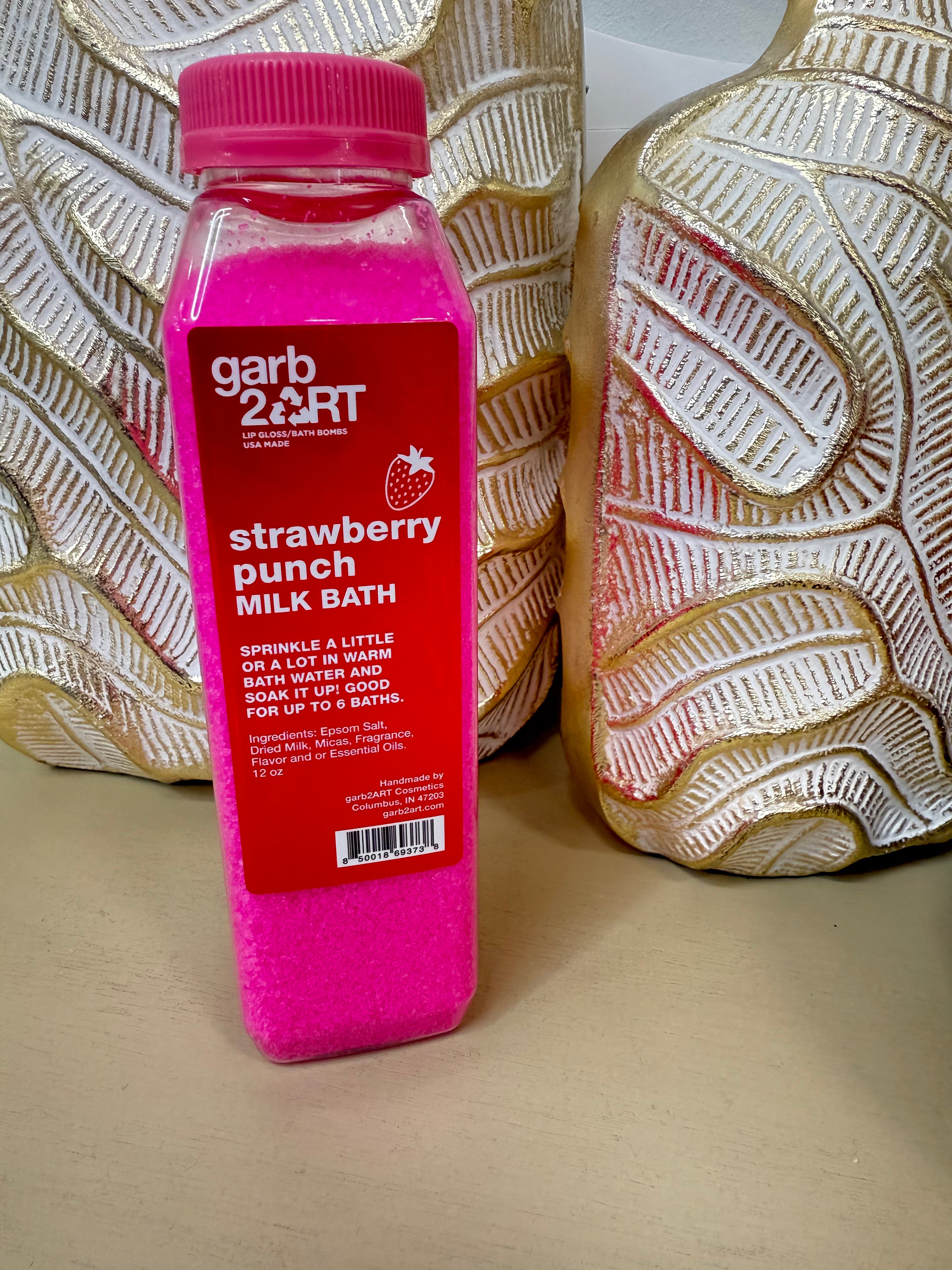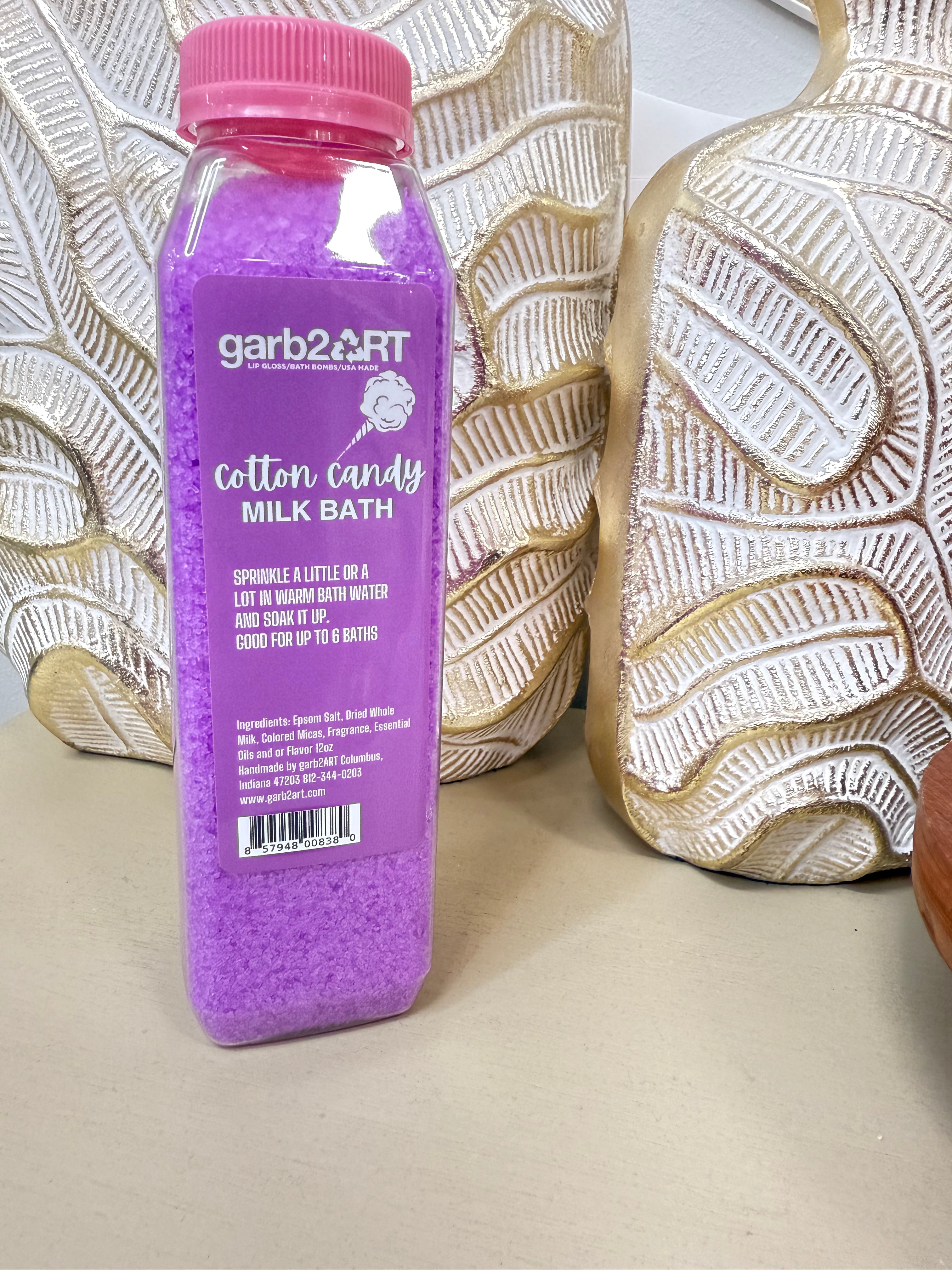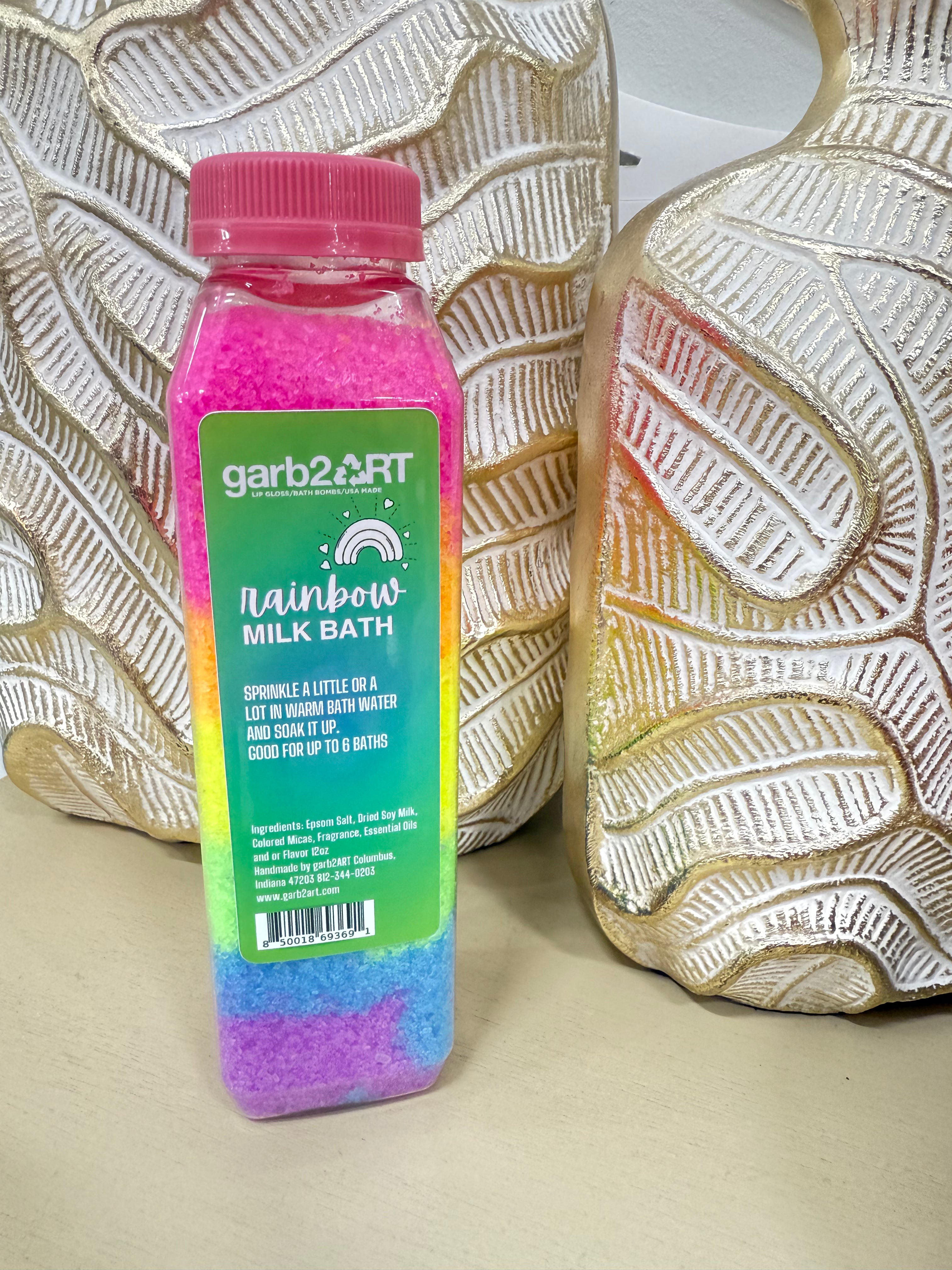 Hand mixed in reusable/recyclable container with epsom salt and dried whole milk. Good for up to 6 baths. Made with natural ingredients.