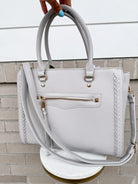 Indulge in luxury with The Melanie purse, crafted from gorgeous vegan leather. This versatile bag features multiple compartments, including a larger one with an internal zipper and open pocket for organization. With its beautiful braided detail and metal feet for protection, this purse is both stylish and practical. Adjust the strap to your preferred length for a sophisticated shoulder or crossbody look.