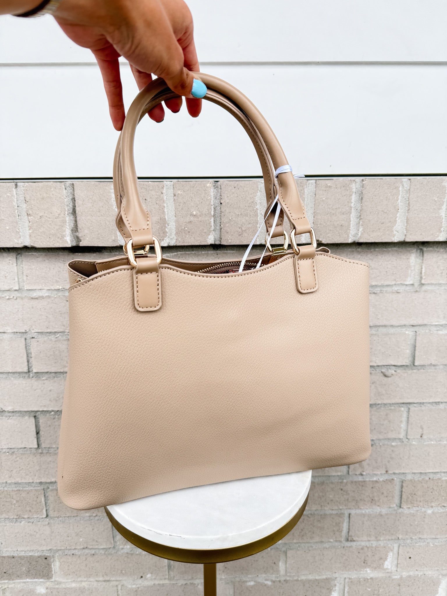 Introducing the elegant Tina purse, crafted from luxurious vegan leather and accented with intricate braided detail. Featuring a full zipper closure for the central compartment and snap closures for two inner compartments, it also includes a shoulder strap and longer option for a cross body look. With an additional zipper and open pocket compartment inside, this purse offers both style and organization. Elevate your fashion game with the Tina purse.
