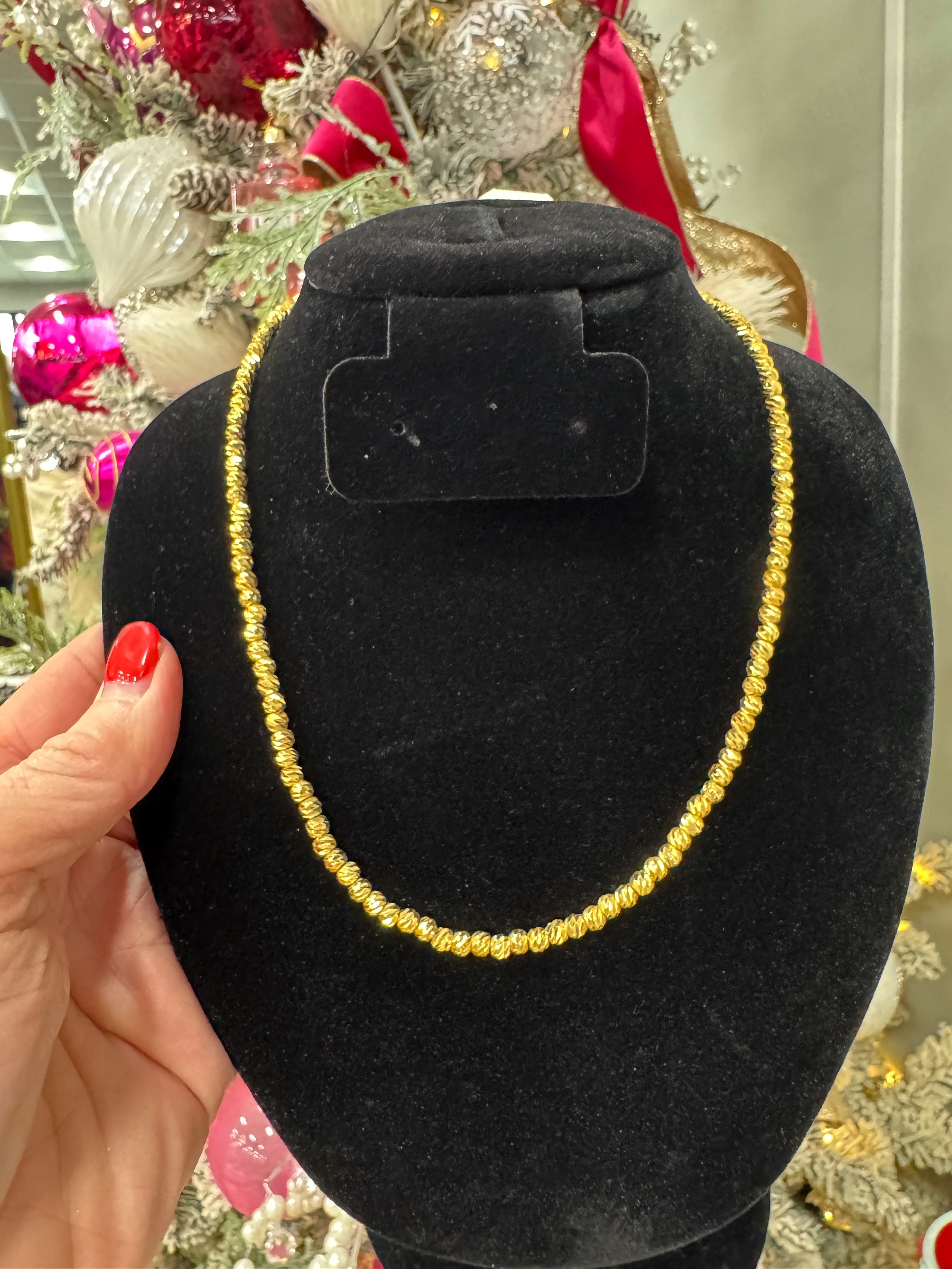 Crafted with attention to detail, this gold-plated necklace is lightweight and comfortable, making it ideal for layering or wearing solo. Its classic silhouette complements any neckline, from tees to blouses to cocktail dresses, providing effortless elegance for every occasion.