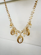Indulge in elegance with our Oval MOP charm necklace. Crafted with stunning Mother of Pearl and alternating pearl charms, this necklace exudes sophistication and grace. Elevate any outfit with this piece, perfect for the modern woman who appreciates the finer things in life.
