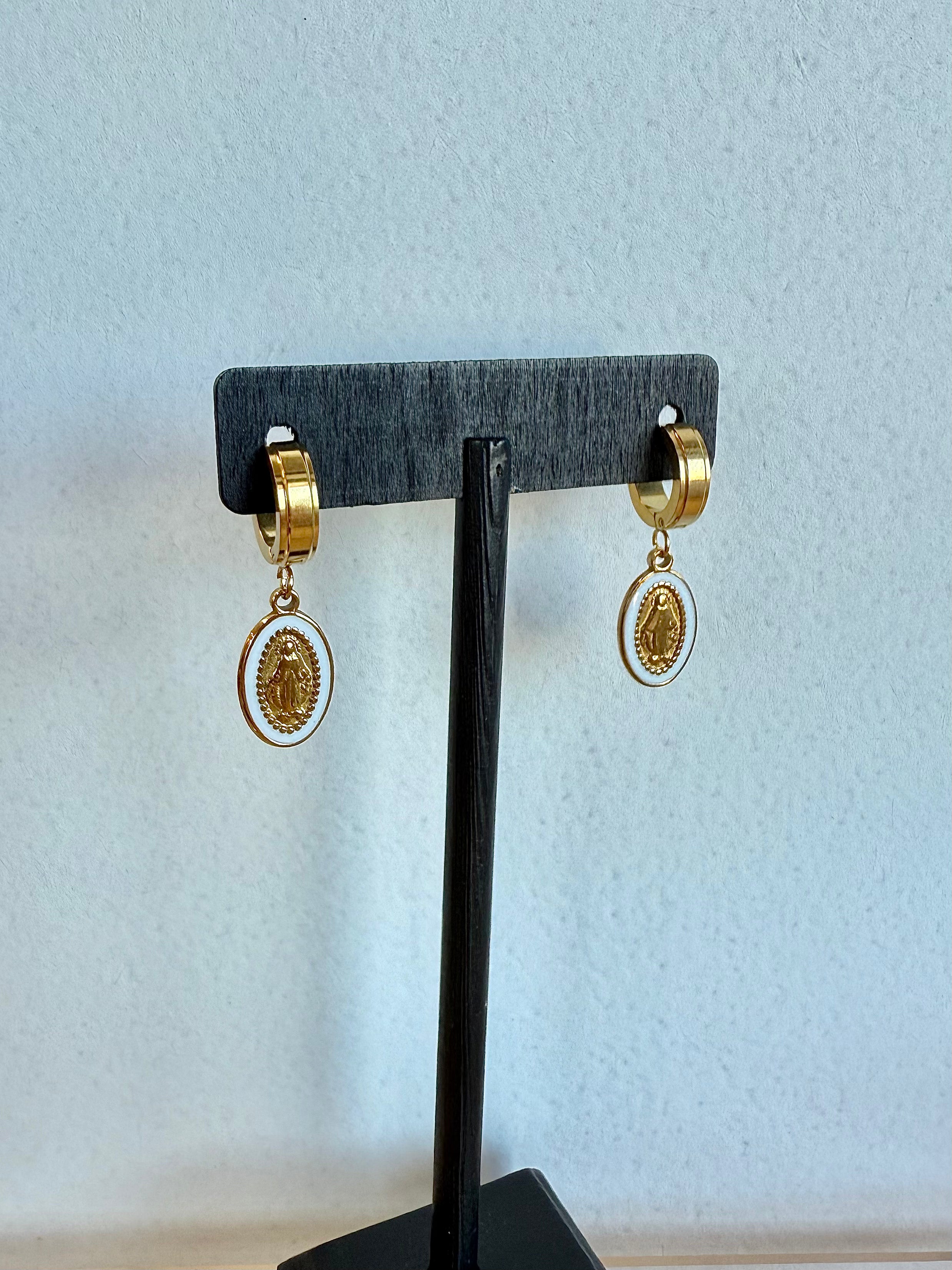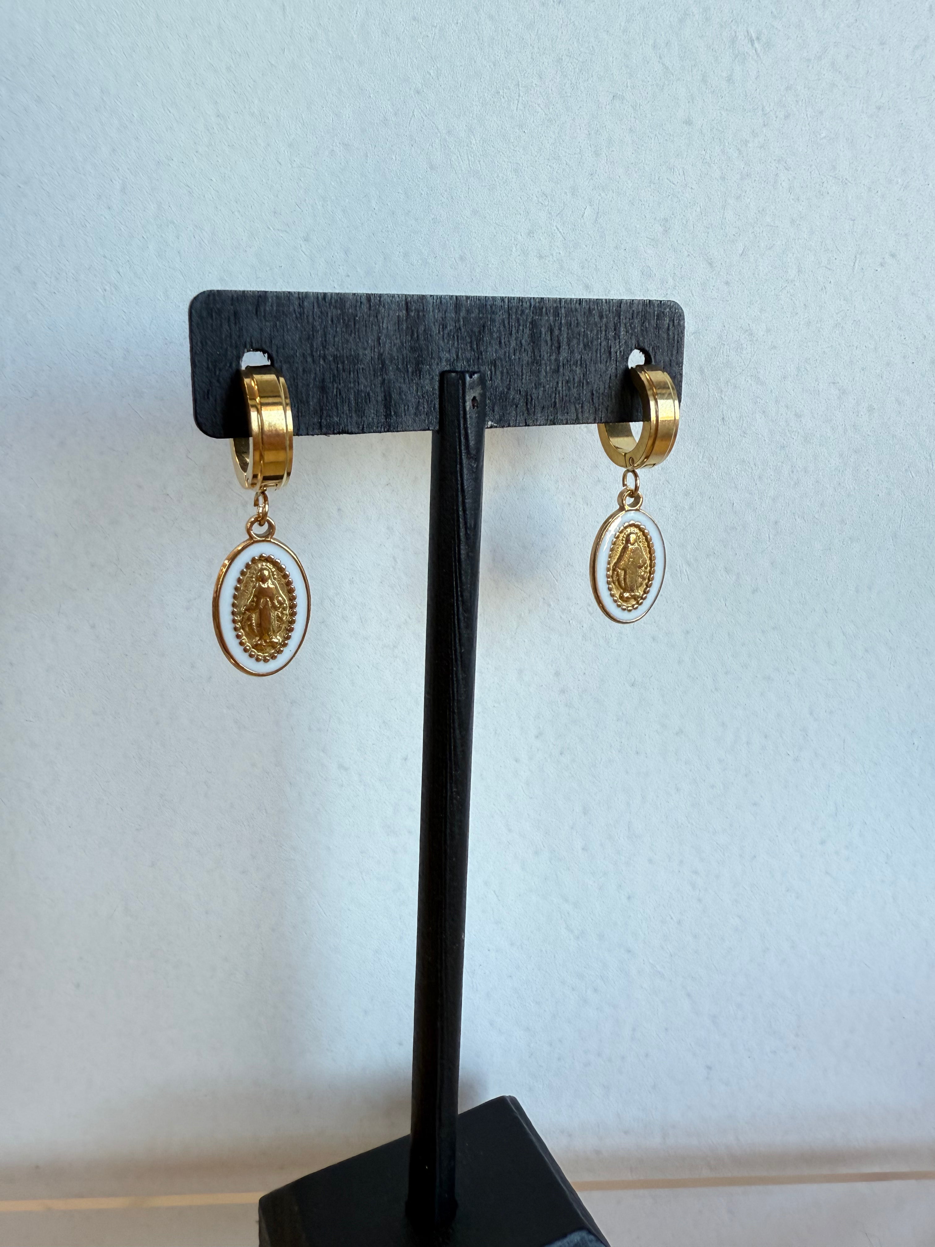 WD WHITE ENAMEL & GOLD MARY EARRINGS