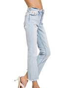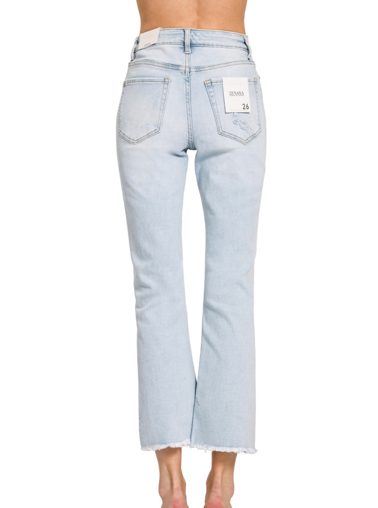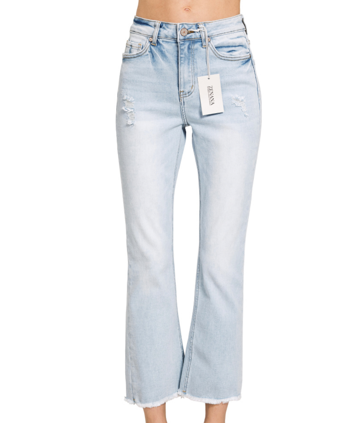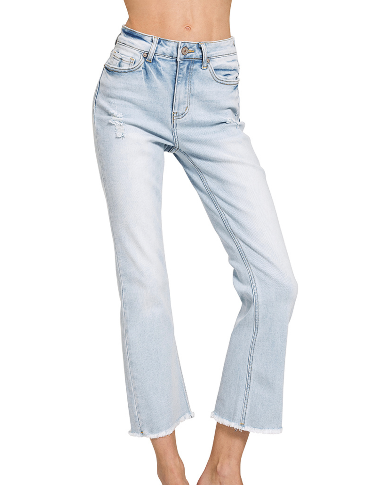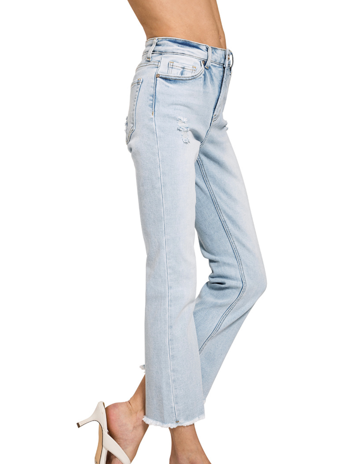 Modern edge meets everyday comfort đ¤ These high rise straight leg jeans are designed with a flattering silhouette and just the right amount of stretch for all-day wear. The distressed detailing adds a lived-in, effortless vibe, while the raw hem gives them a contemporary finish that feels fresh and on-trend.