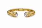 A stunning fusion of artisan craftsmanship and modern elegance. This gold cuff bracelet features a hand-hammered finish that catches the light beautifully, crowned with a luminous clear bead at one end.