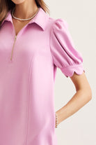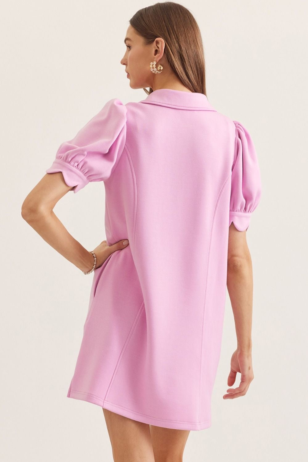 Make a statement in this charming pink Entro dress featuring romantic puff sleeves and a flattering silhouette. The perfect blend of feminine style and comfortable wear, this dress is designed to make you feel beautiful for any occasion.