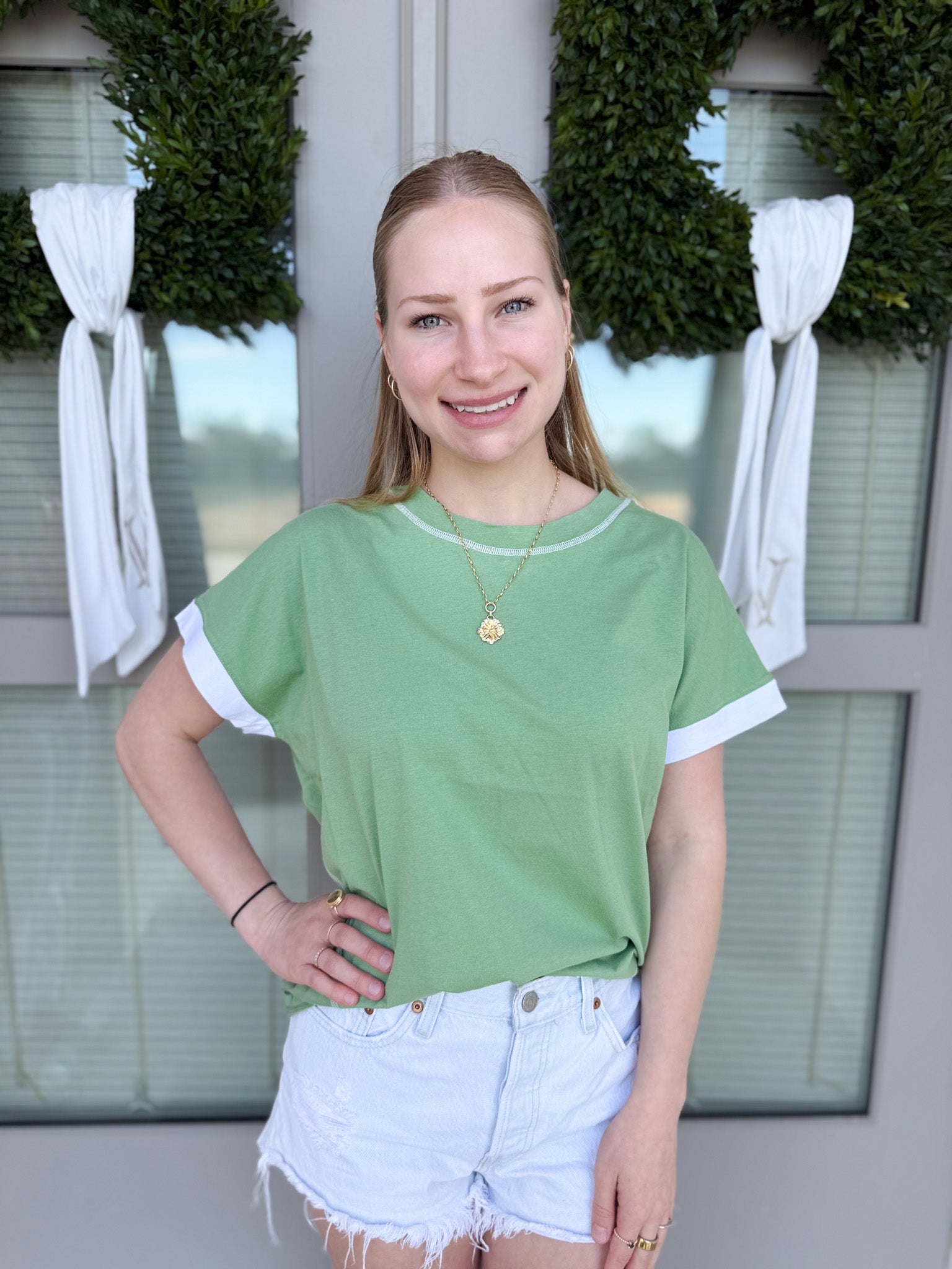 Stitch Detail Ruffle Smocked V-Neck Blouse