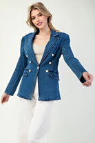 Give your wardrobe a fresh twist with the Mineral Washed Denim Blazer Jacket. Crafted with stone, bleach, enzyme, and mineral washes, this blazer combines classic tailoring with a modern denim edge. Designed to flatter with its fitted silhouette, it’s finished with elegant pearl button accents and timeless blazer details.