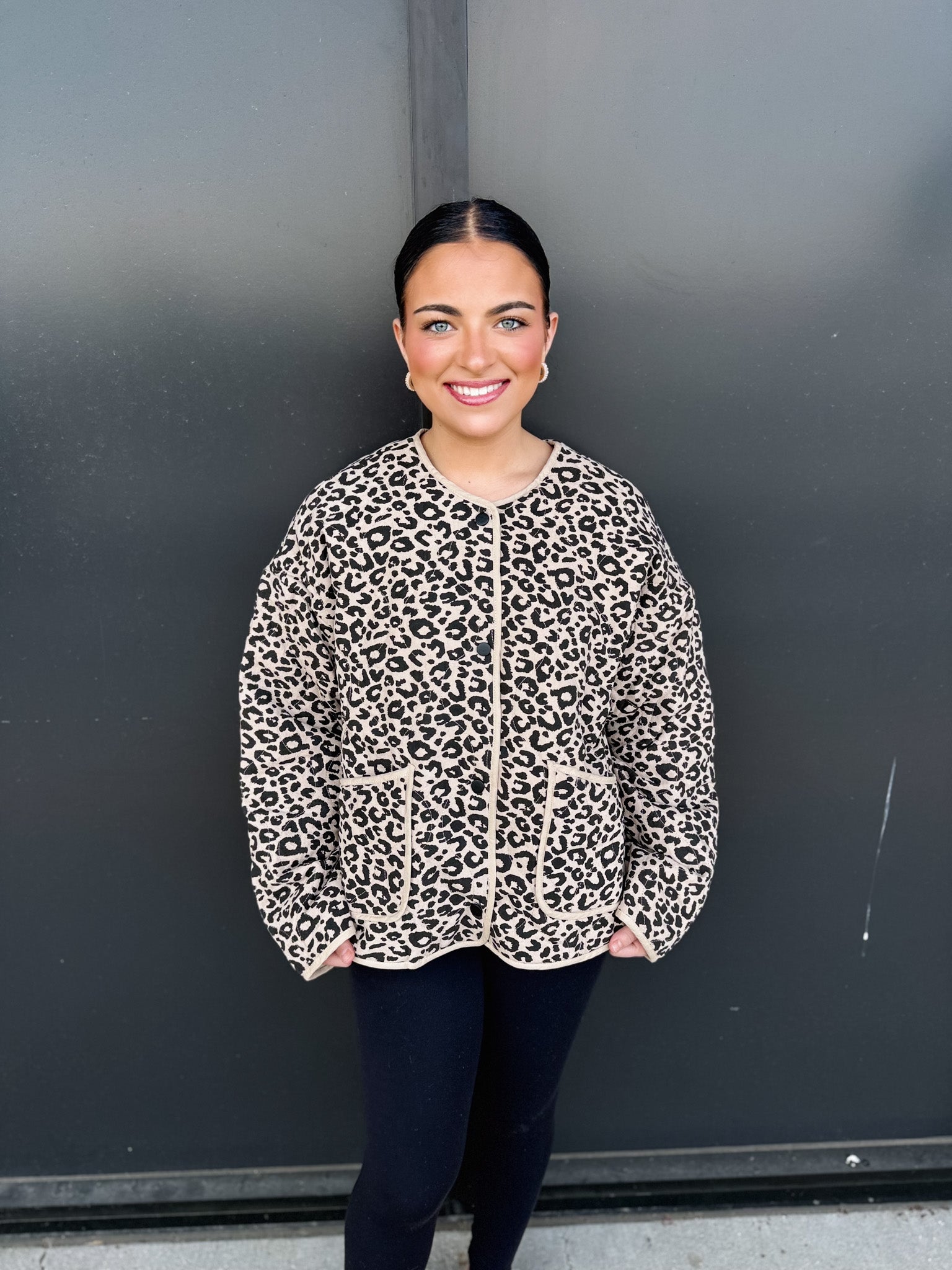 Practicality meets polish in this piece. The front closure makes it easy to wear open for a laid-back vibe or buttoned up for extra warmth. Subtle detailing adds just the right touch of refinement, allowing the leopard print to shine as the star of the show.