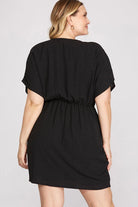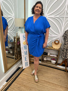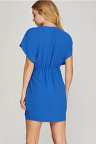 Indulge in the exquisite elegance of our Christie Dress. This gorgeous piece features luxurious dolman sleeves and a surplice woven V-neck, adorned with a delicate side tie. Perfect for any occasion, this dress exudes sophistication and style. Elevate your wardrobe with this must-have addition.