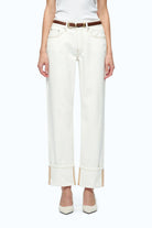 Step into fun with the Bayeas Michelle Jeans! Made from a slightly stretchy fabric, they move with you for all-day comfort. Classic five-pocket styling meets playful rolled cuffs, while hand-distressed hems and back pockets add a cool vintage twist. Contrasting thread stitching makes these jeans pop, perfect for adding a splash of personality to your everyday look.