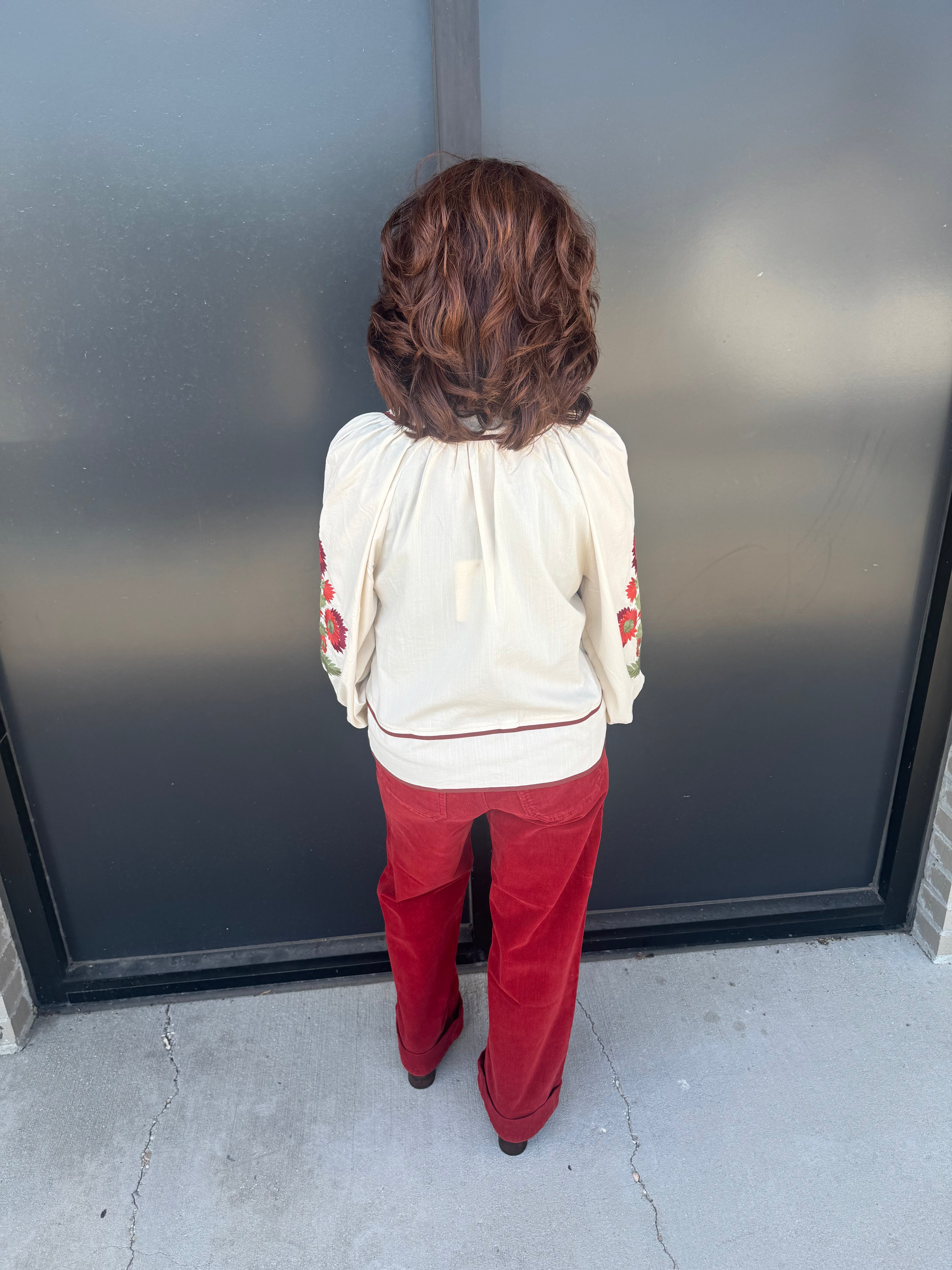 Long puff sleeves with floral embroidery