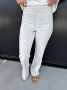 Elevate your professional attire with our Glam Sarah Pants. Designed with a high rise waist for a flattering fit and featuring a convenient front seam down the middle of the pant leg, you'll feel confident and stylish in these dress pants. Perfect for any formal occasion.