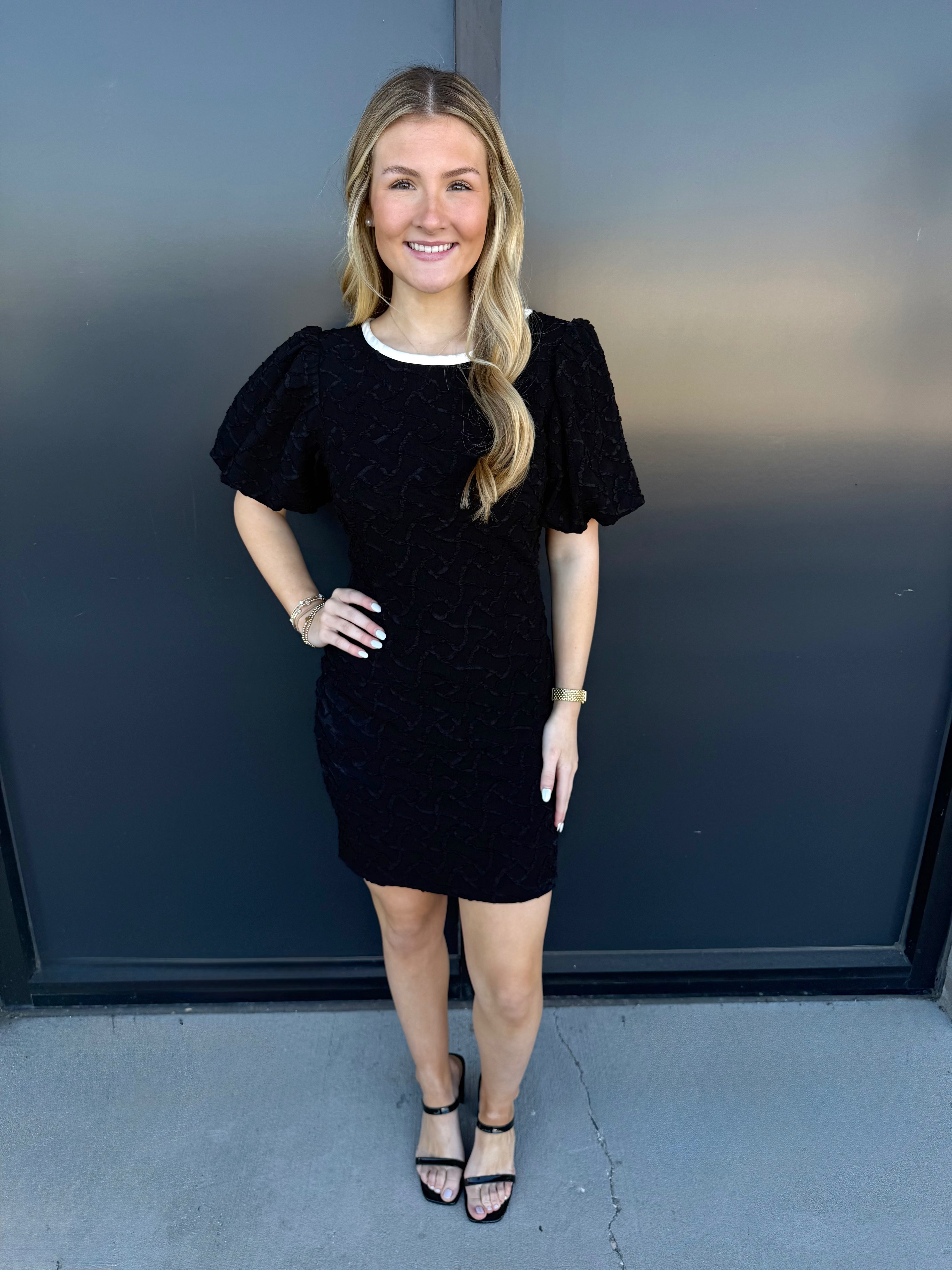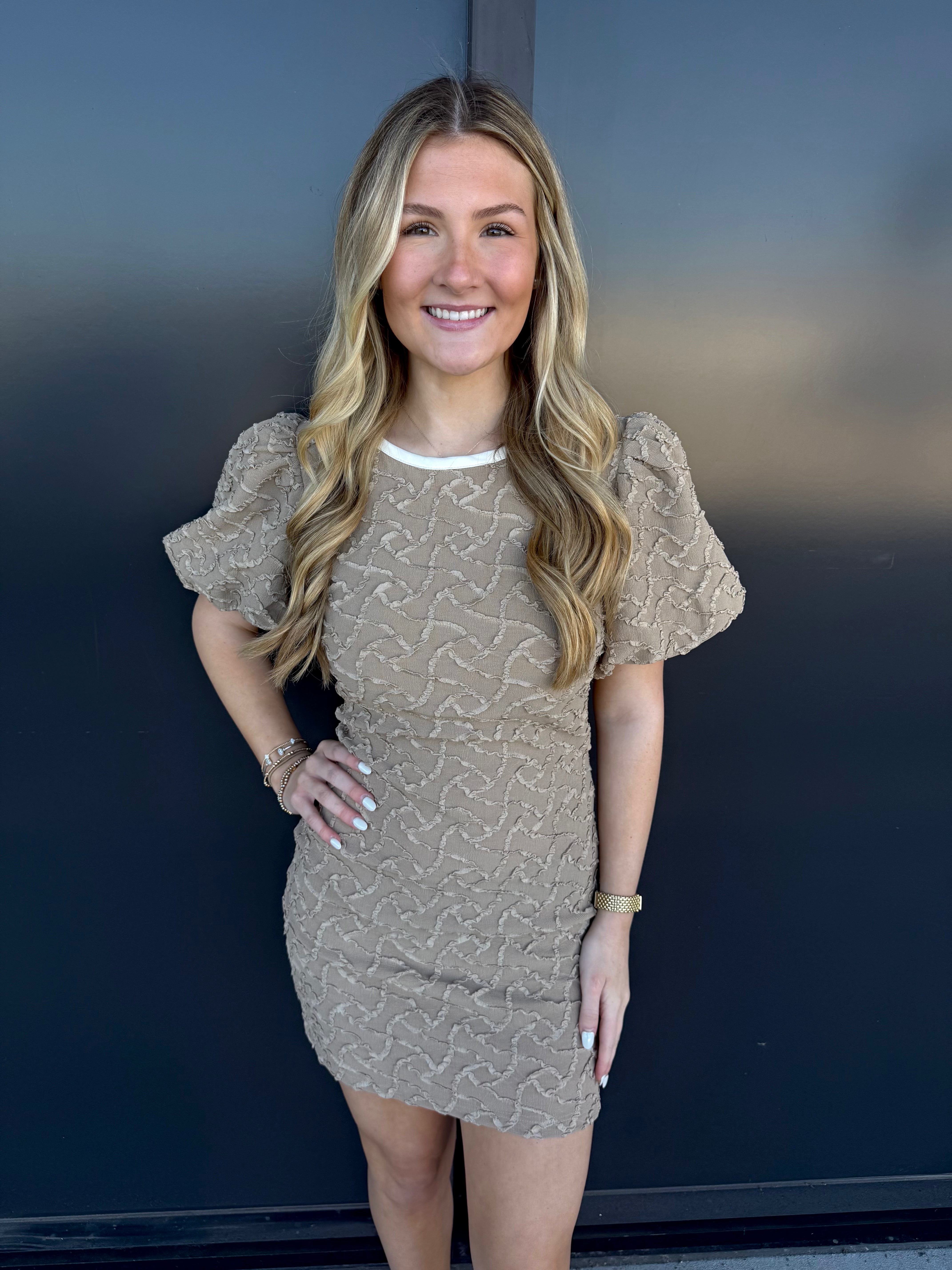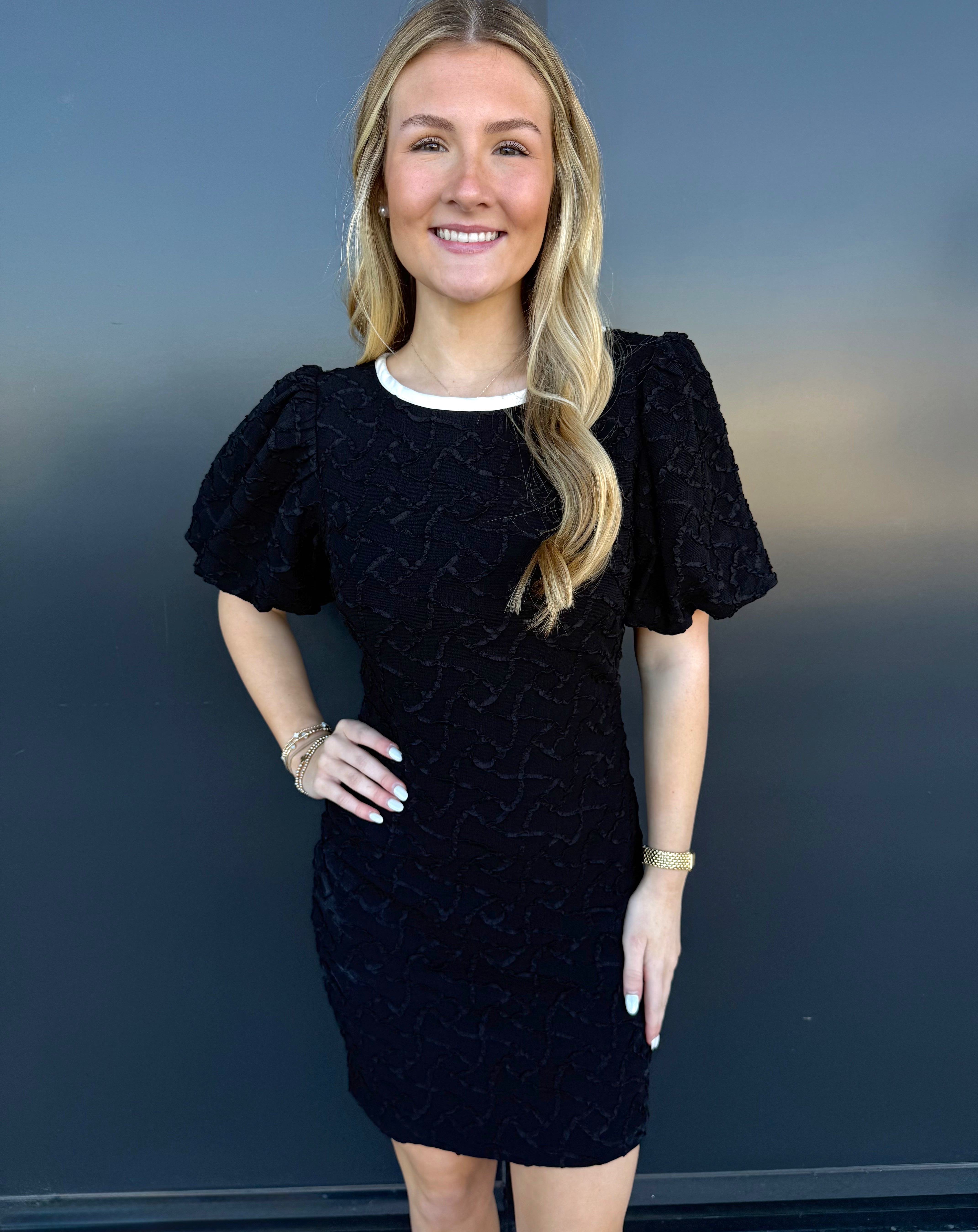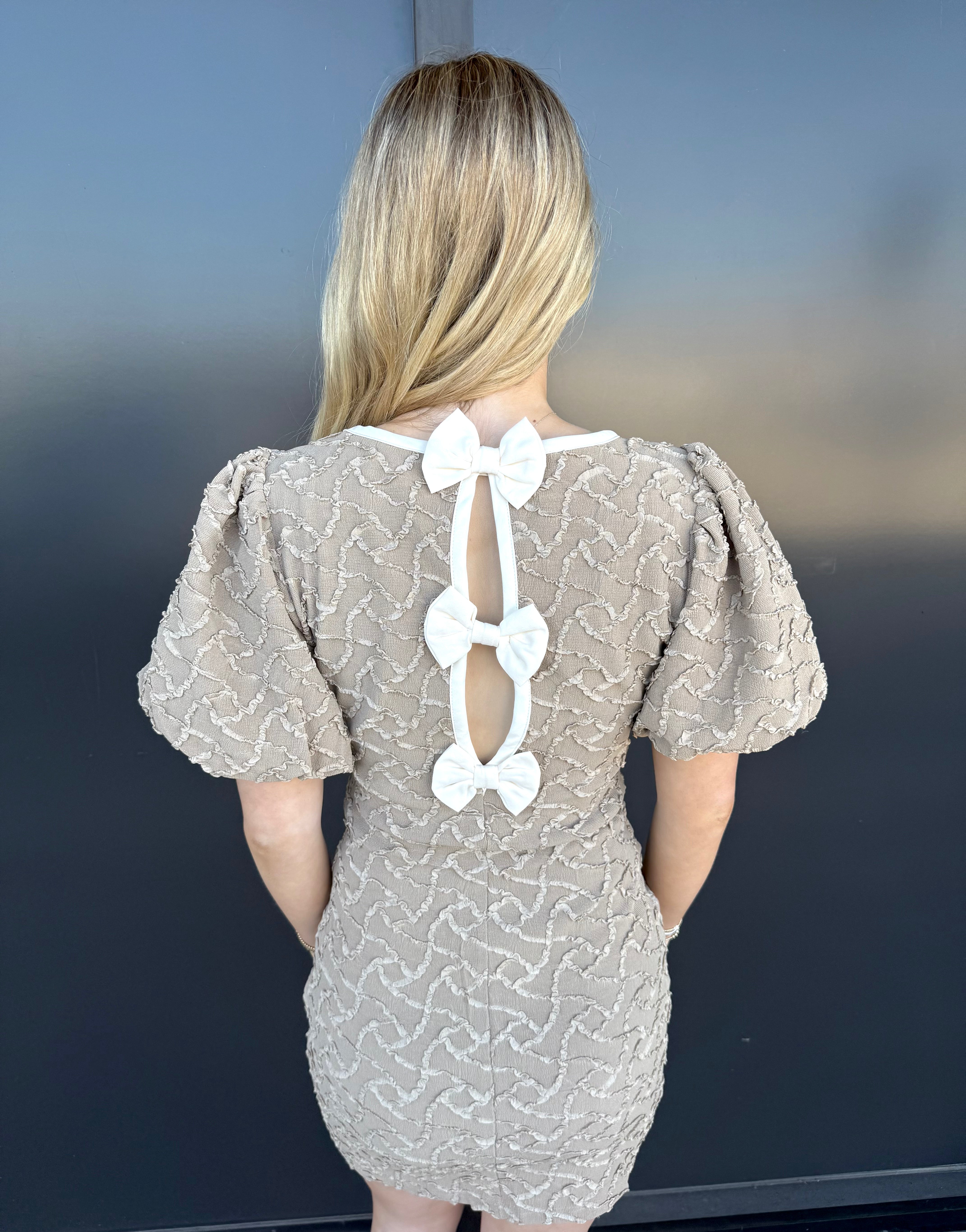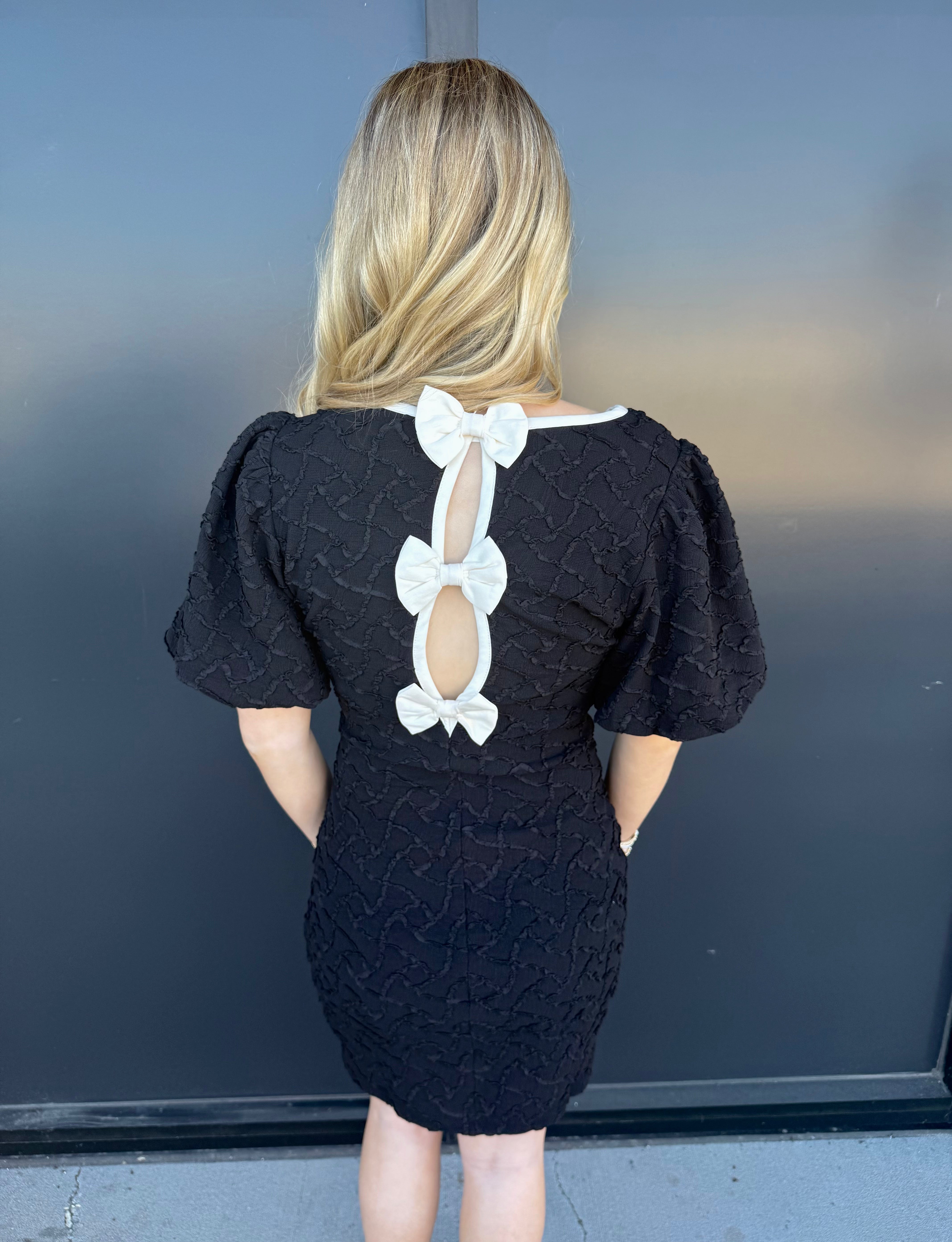 Indulge in luxury with the ID Billie Dress. Made from a stretch textured woven fabric, this mini dress features a delicate contrast bow for a touch of elegance. Perfect for any occasion, this dress will make you feel sophisticated and exclusive.