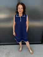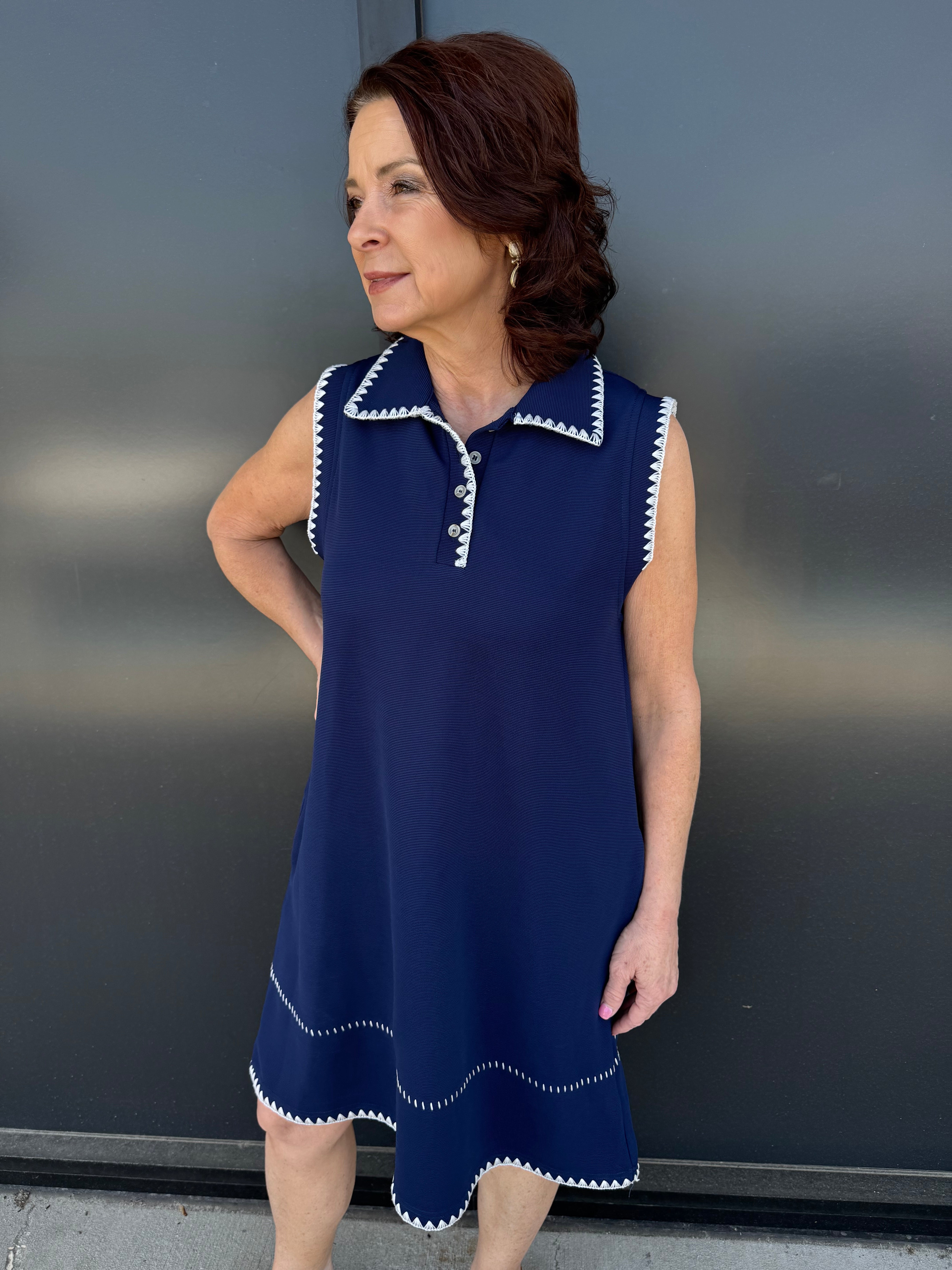 Elevate your wardrobe with the Jodifl Katy dress. This navy sleeveless dress features a stunning button down detail, adding a touch of sophistication to your look. Its luxurious design and high-quality craftsmanship make it the perfect choice for any occasion. Make a statement and stand out from the crowd with this elegant and exclusive dress