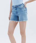 Introducing our LV Boyfriend Shorts, the epitome of luxury and comfort. Made with high-quality stretch denim, our shorts feature a high-rise waist and raw hem for a sophisticated and effortless look. Pair them with your favorite top for a timeless and elegant summer ensemble.