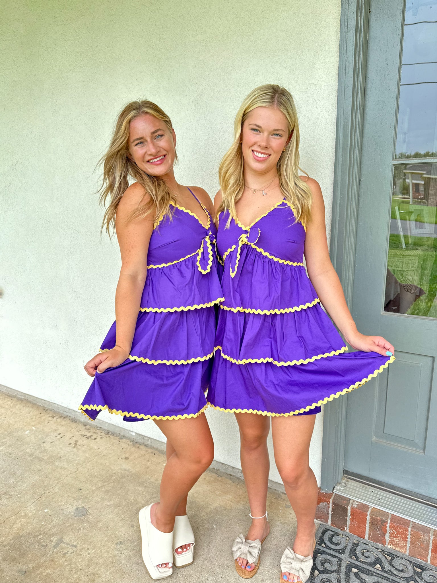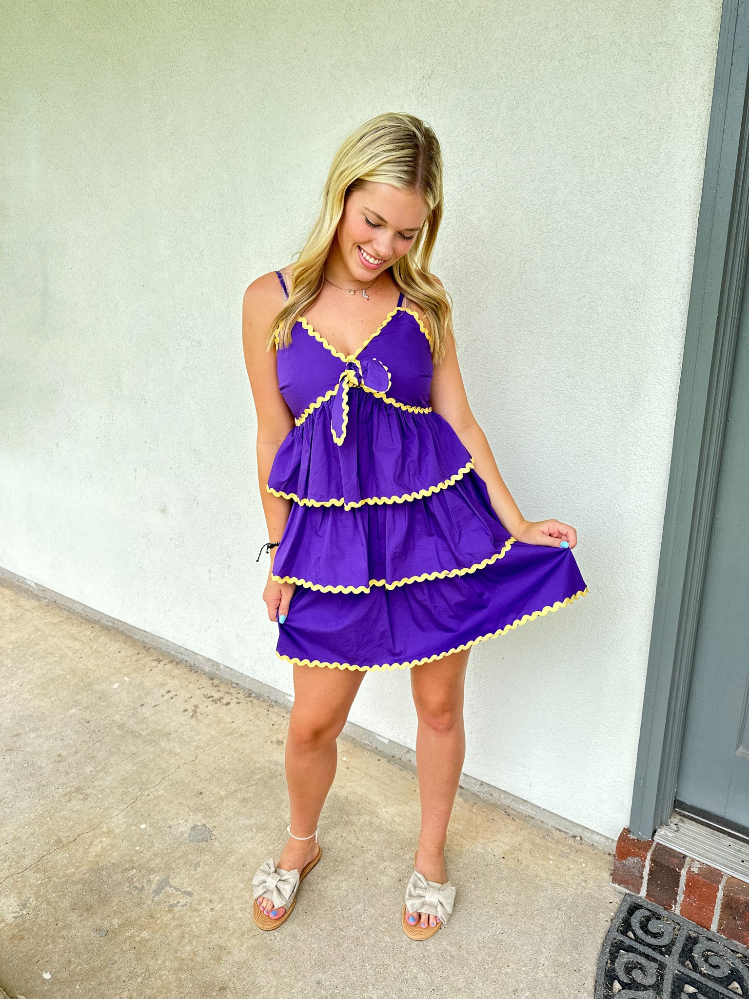 Get ready for game day in style with the Peach Love Tiered Dress! Made of comfortable cotton poplin with contrasting trim, this dress features playful tiered layers that will make you stand out in the crowd. Perfect for a playful and fun-loving fashionista. Go team!