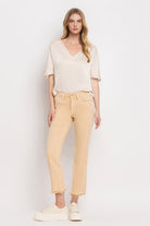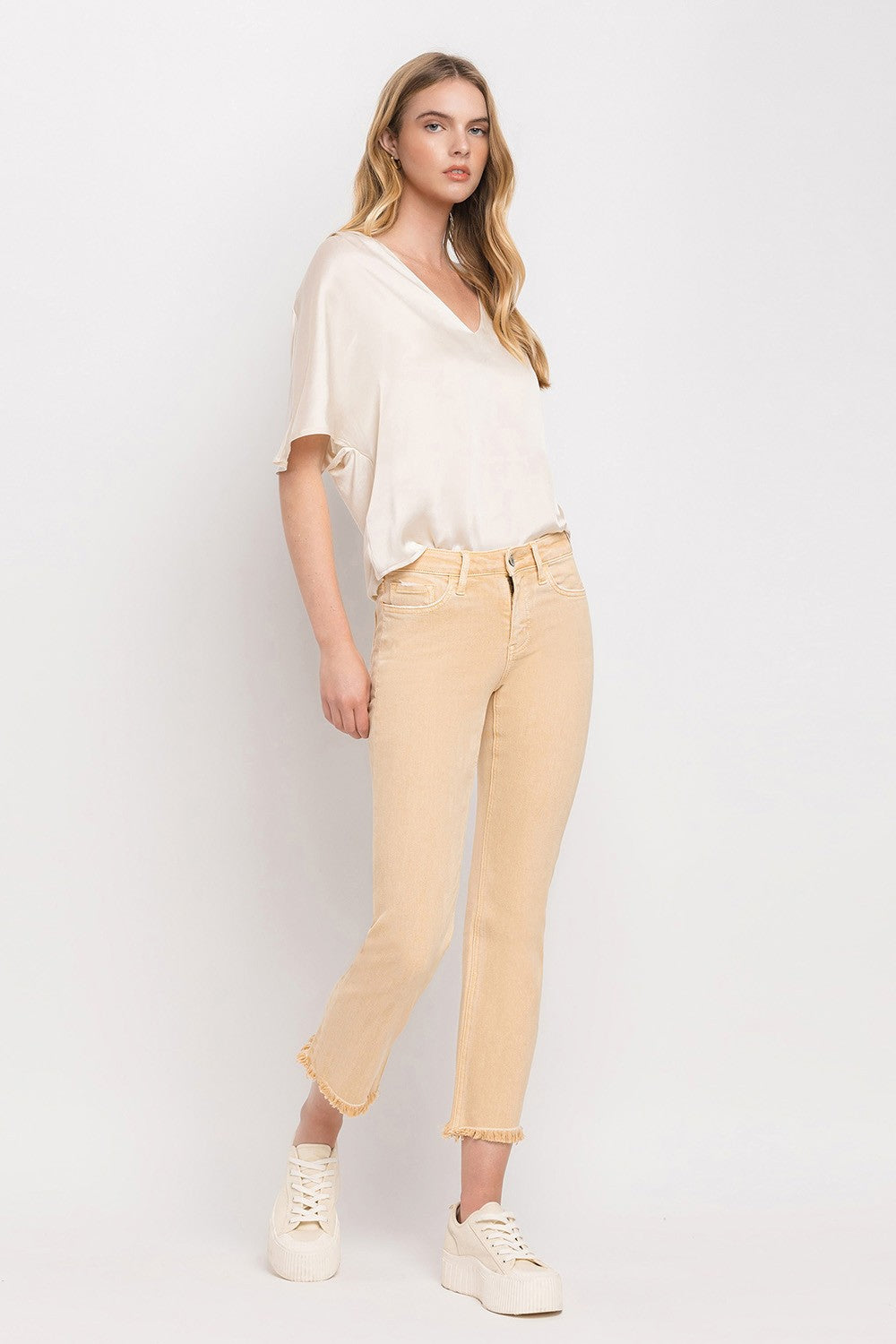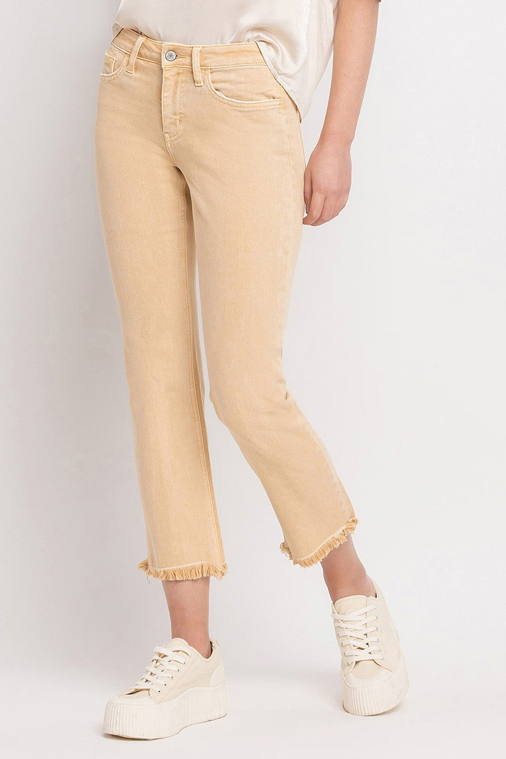 These Vervet Mid Rise Straight Jeans bring playful comfort to your wardrobe with their soft stretch denim and flattering mid-rise waist. The cropped length and frayed hem add a fun, casual vibe, perfect for showing off your favorite shoes. Whether you're out for a stroll or meeting friends, these straight-leg jeans combine style and ease effortlessly.