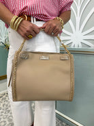 Introducing The Vivian purse - a must-have for the fashion-forward. Crafted with exquisite vegan leather, this elegant bag features a versatile chain strap, chain detailing, and a longer strap for shoulder or crossbody wear. The snap closure opens to reveal a spacious interior with metal feet to protect against scuffs. Upgrade your accessory game with this luxury piece.